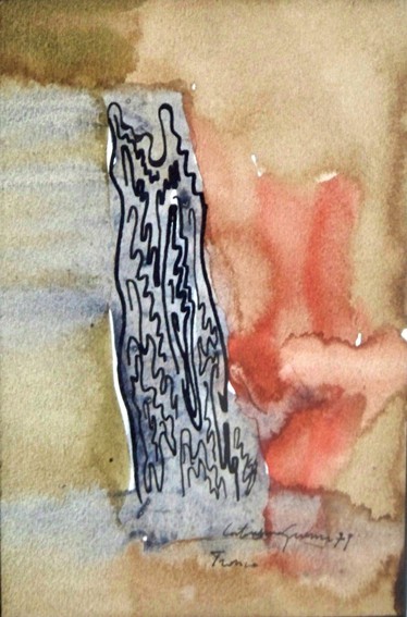 A Guenzi sono estranei sia l’ansia di attirare l’attenzione con effetti speciali, sia qualsiasi volontà di trasformare il mondo con reboanti dichiarazioni (anche se nel 1954 con Mario Bionda e Ralph Romney firma il manifesto L’antiestetica). La sua non è arte di scopo, men che meno arte per arte. E’ vocazione, respiro. E il linguaggio informale è il più consono a rendere i battimenti della sua pleura psichica.