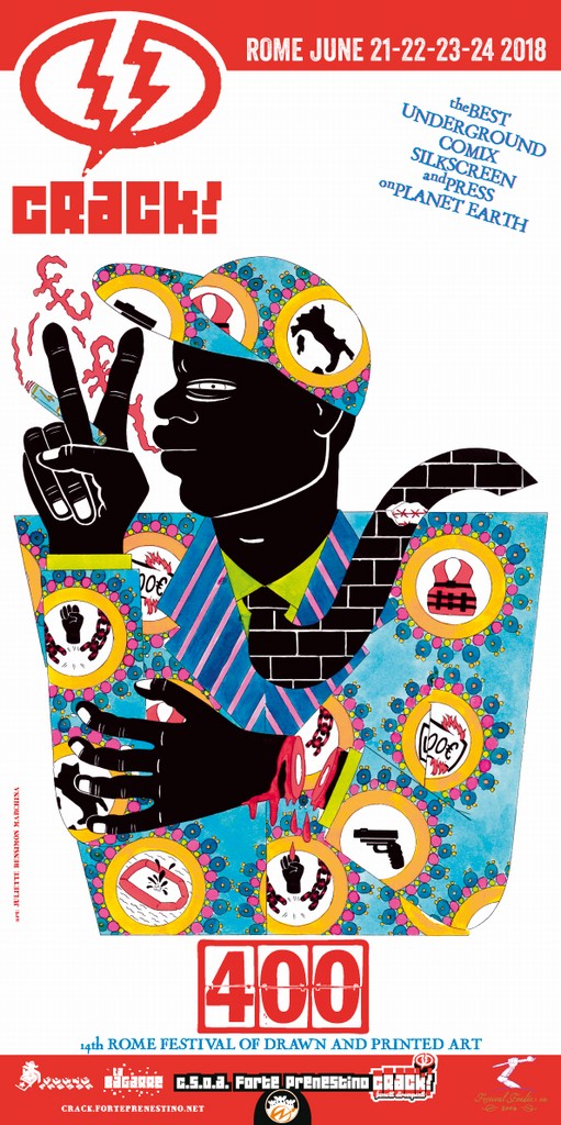 Per questo motivo il nostro festival inaugura l’edizione 400, il CRACK! 2018, festival autogestito e auto-organizzato in rete dedicato al fumetto e all’arte disegnata e stampata, giunto alla sua 14° edizione, al Forte Prenestino di Roma. CRACK! è ormai un appuntamento fisso per l’underground mondiale dove i partecipanti, che arrivano da molto oltre i confini dell’Area Schengen, trovano nello spazio illegale, nomade e policulturale del festival un’area internazionalista di espressione e narrazione che non partecipa delle logiche neocolonialiste. CRACK! vuole partecipare ad un percorso di decolonizzazione che restituisca dignità, diritti e potere a chi continuamente subisce sui propri corpi, nei propri spazi e nella ricostruzione delle proprie memorie, chi sopporta l’urto di un’idea del mondo che da almeno quattrocento anni si infrange sulla storia di questo pianeta.