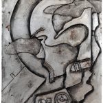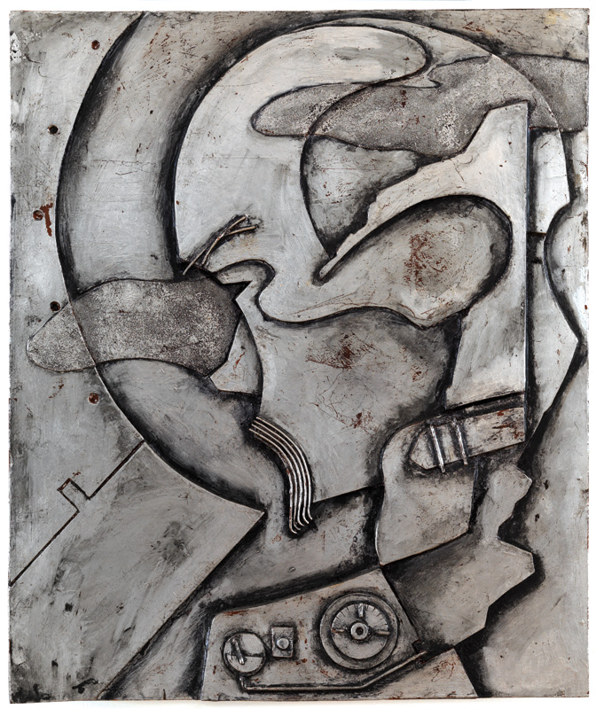 - Futuro fossile della civilità meccanica, 1963, Metallo e sasso su masonite, 47 x 45