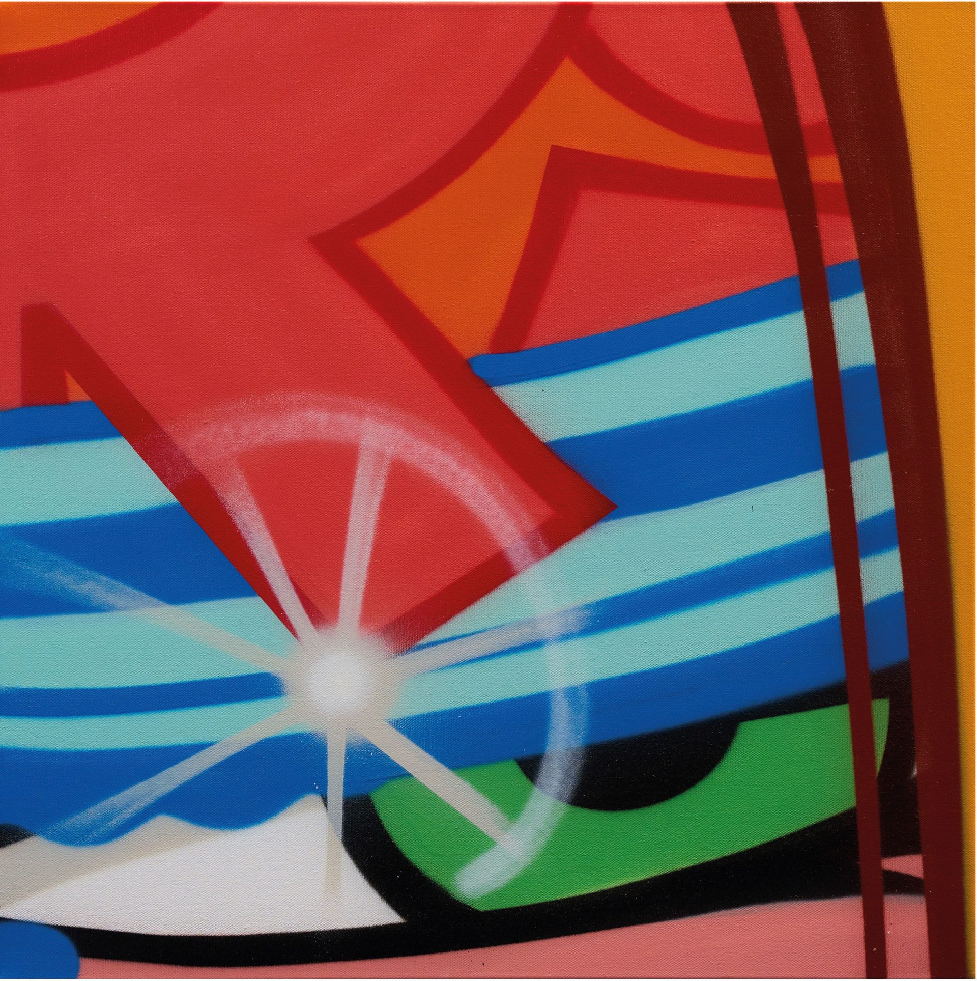 Kool Koor (Charles Hargrove, New York, 1963) virtuoso del panzerismo iconoclasta giunge a una sorta di astrattismo lirico in cui micro e macro strutture sembrano affrontare viaggi cosmici