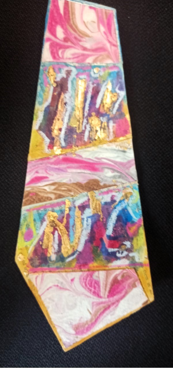 Ognuno di loro ha dipinto, su una o più sagome di cartone dalla forma approssimativa di una cravatta (in realtà sono state utilizzate le cosiddette “cravatte” degli schienali inutilizzati e recuperate da diverse cornici) un disegno o una fantasia astratta, come se fosse la fantasia di una cravatta. Le persone presenti alla inaugurazione saranno invitate a votare la cravatta da loro preferita e al termine della giornata inaugurale sarà premiato l’artista che ha dipinto la cravatta che avrà riportato il maggior numero di preferenze.