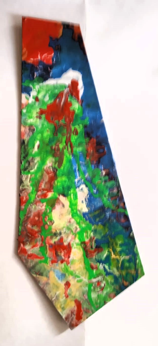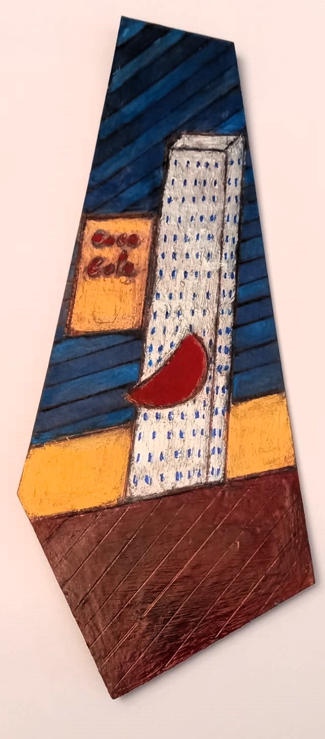 50 artisti hanno dipinto, su una o più sagome di cartone dalla forma approssimativa di una cravatta un disegno o una fantasia astratta, come se fosse la fantasia di una cravatta