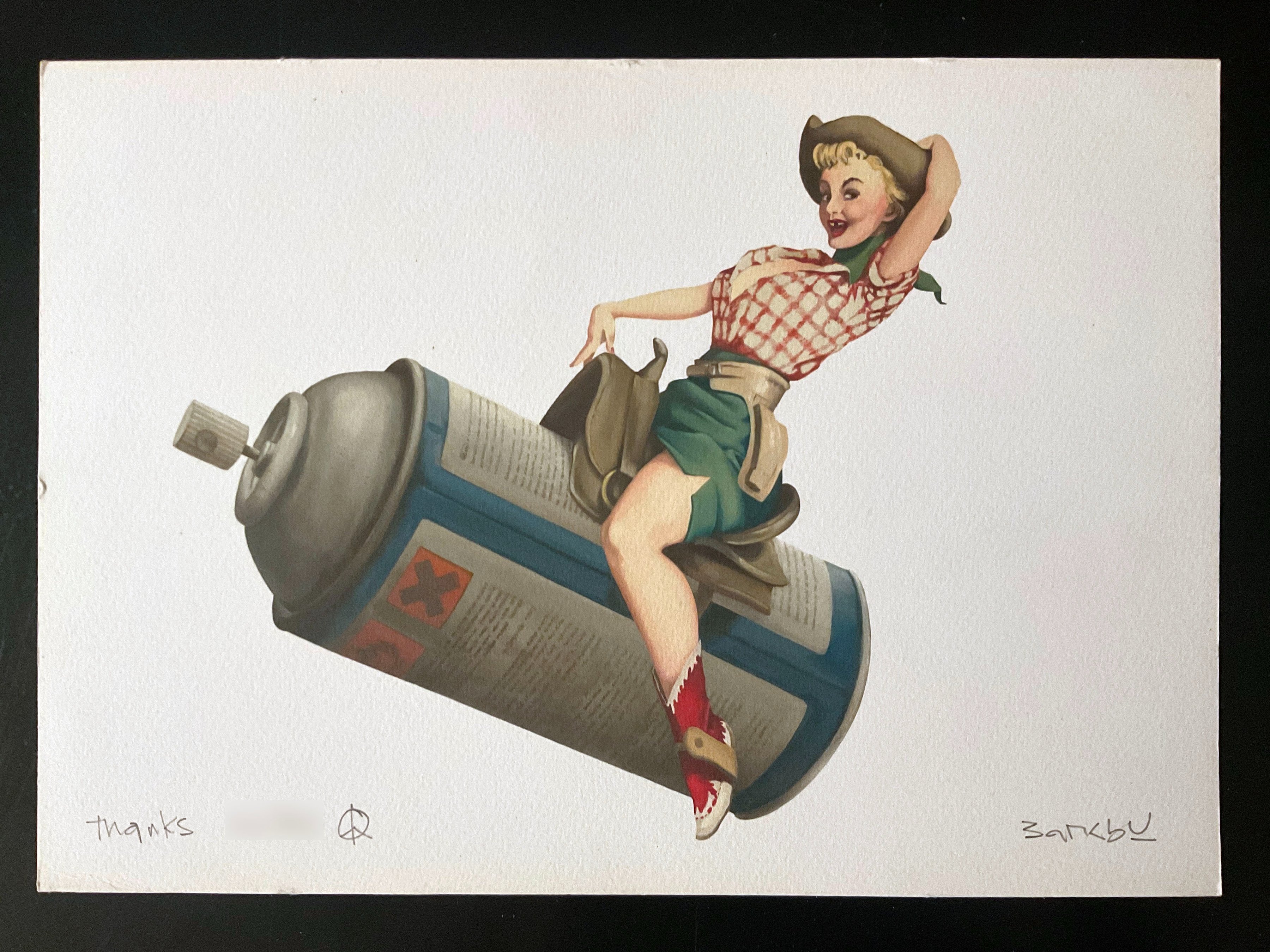 In asta anche la stampa “Rodeo Girl” di Banksy, firmata e dedicata, qui eccezionalmente offerta senza prezzo di riserva. Si tratta di un’edizione davvero speciale che l’artista britannico creò nel 2008, nel contesto del “Cans Festival” da lui organizzato a Londra; in quell’occasione, gli artisti invitati, tra i quali alcuni italiani, ricevettero una copia della stampa come ringraziamento per la partecipazione. Questa incredibile presenza in asta sta a testimoniare la portata internazionale dell’arte urbana italiana e i suoi legami con la scena globale nella sua massima rappresentanza.