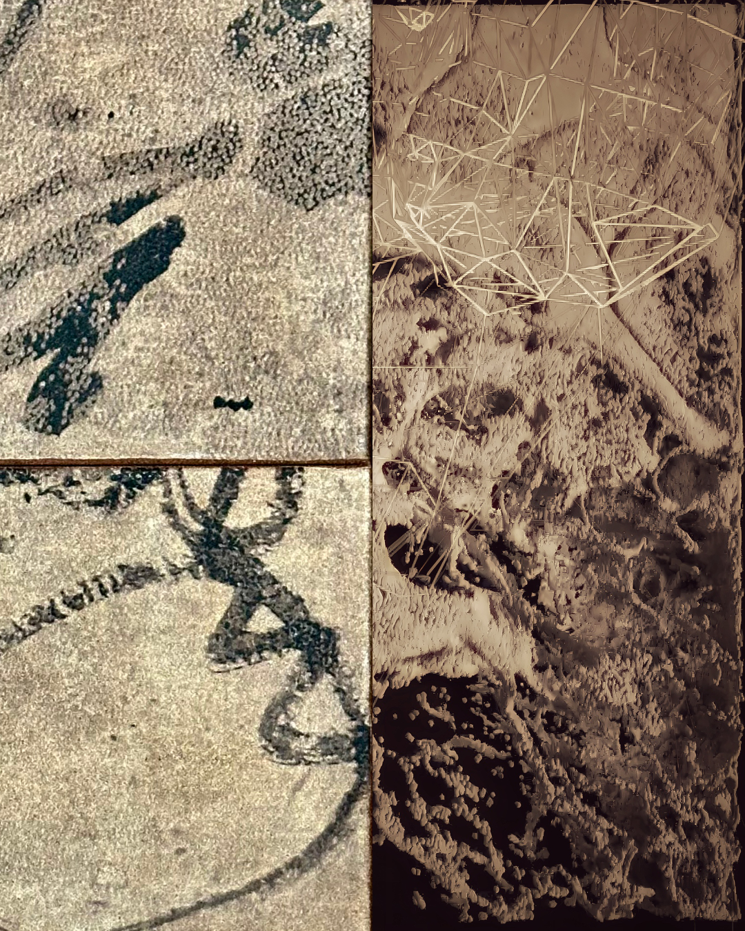 The textile medium represents one of the cornerstones of his work. The artist's approach to the design and realisation of a textile work originates from compositional references selected from his own works. The study of materials and titles that identify qualities of yarns and colours, is consistent with the aesthetic restitution aesthetics of the chosen work. Drawing on the reference matrices determined by mulberry pulp cardboards, silkworm eggs and ideograms, Marco Noviello has designed and realised, through a totemic sequence of screens, a reworking in visual art of selected image details, translating them into a filmic narrative. From this mutable narrative he has extrapolated frames that he gives back through his printing and man-machine integration, resulting in ten unique works. Guido Lusetti will be integrated into the Muri di Seta project with the original composition Haniwa, the sound environment