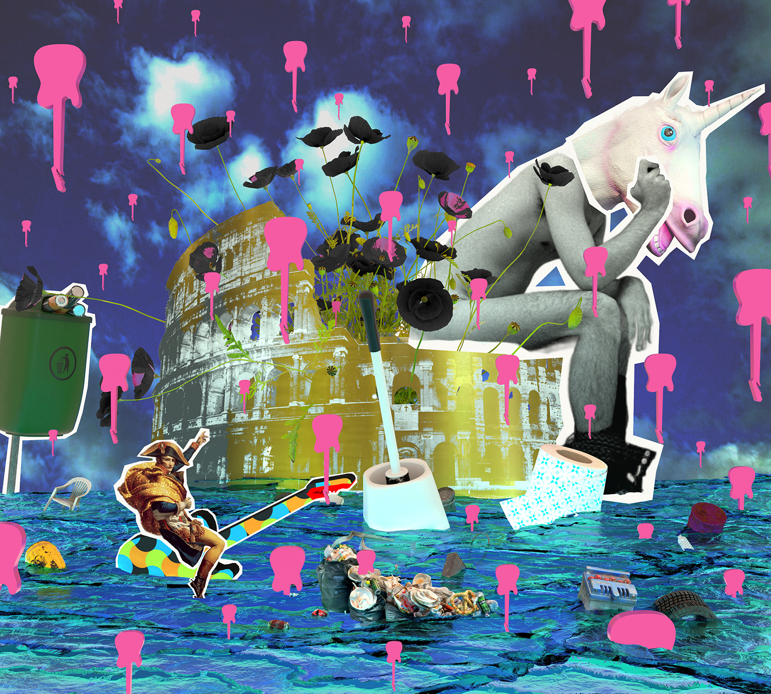 Attraverso composizioni dai colori vivaci, apparentemente molto divertenti, l’artista vuole invitare il pubblico a una riflessione collettiva e profonda: fiumi avvelenati, mari soffocati dalla plastica, ghiacciai che si sciolgono, animali in estinzione, intossicazioni, siccità, esondazioni...