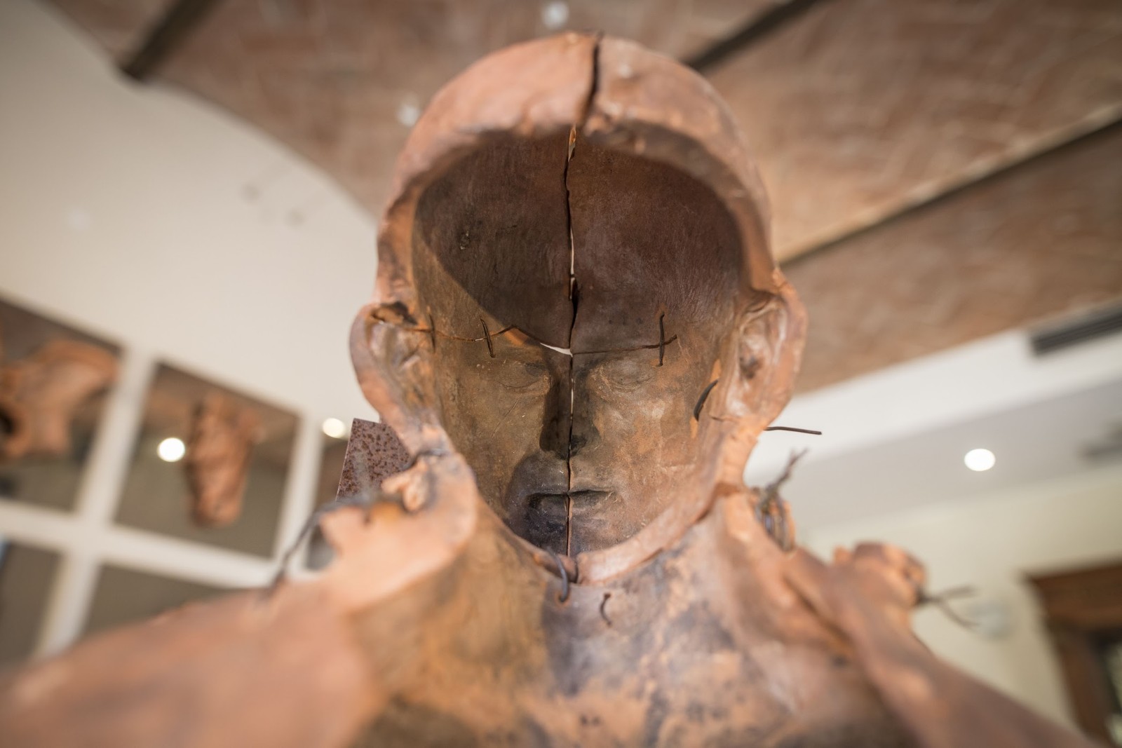 Matteo Lucca (Forlì, 1980) Laureato in scultura all’Accademia di Belle Arti di Bologna, utilizza vari materiali prediligendo però terracotta e pane. I suoi Uomini di pane, sculture in pane cotte all’interno di stampi in terracotta, di volta in volta trasformano la materia, tra fedeltà al modellato e metamorfosi forgiate dal fuoco. Fra le mostre principali segnaliamo le collettive Postwar, Isorropia Home Gallery, Milano; Burn It, a cura di Wilko Austerman, Dusseldorf, Monchengladbach e Krefeld; Il Profumo del Pane, evento ufficiale di Argillà 2018, Faenza e la personale Gold wears down, Magazzeno Art Gallery, Ravenna. Il 2019 vede la sua partecipazione al Festival filosofia di Modena, con la collettiva “ nella mente di chi guarda “ curata da Alessandro Mescoli , Laura Solieri e Marco Coltellacci, all’interno della chiesa di San Giovanni Battista.