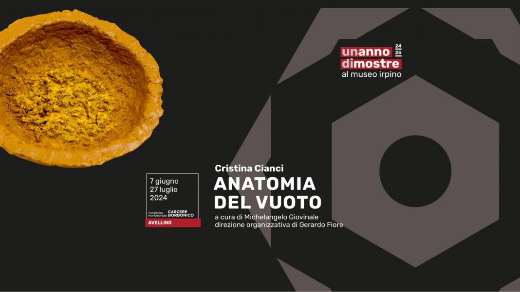 La Mostra ‘’Anatomia del vuoto’’ inaugura venerdì 7 giugno alle ore 18.00 presso il Museo Irpino – Complesso Monumentale Carcere Borbonico. La personale di Cristina Cianci si presenta come un ampio e complesso arco produttivo in cui l’artista circoscrive il vuoto in una relazione profonda fra la sua esistenza e la manipolazione della materia.