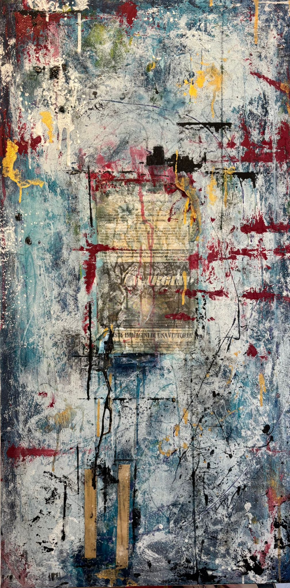 Le opere sembrano colte in un momento di transizione e frattura, come fossero attraversate da una scelta ancora in atto, in una trasformazione continua: nulla si perde, tutto cambia stato. La dissolvenza non coincide con una sottrazione, ma con un passaggio, con una possibilità di conoscenza, mentre le campiture irregolari e stratificate richiamano alla memoria una ridondanza con significati precisi.