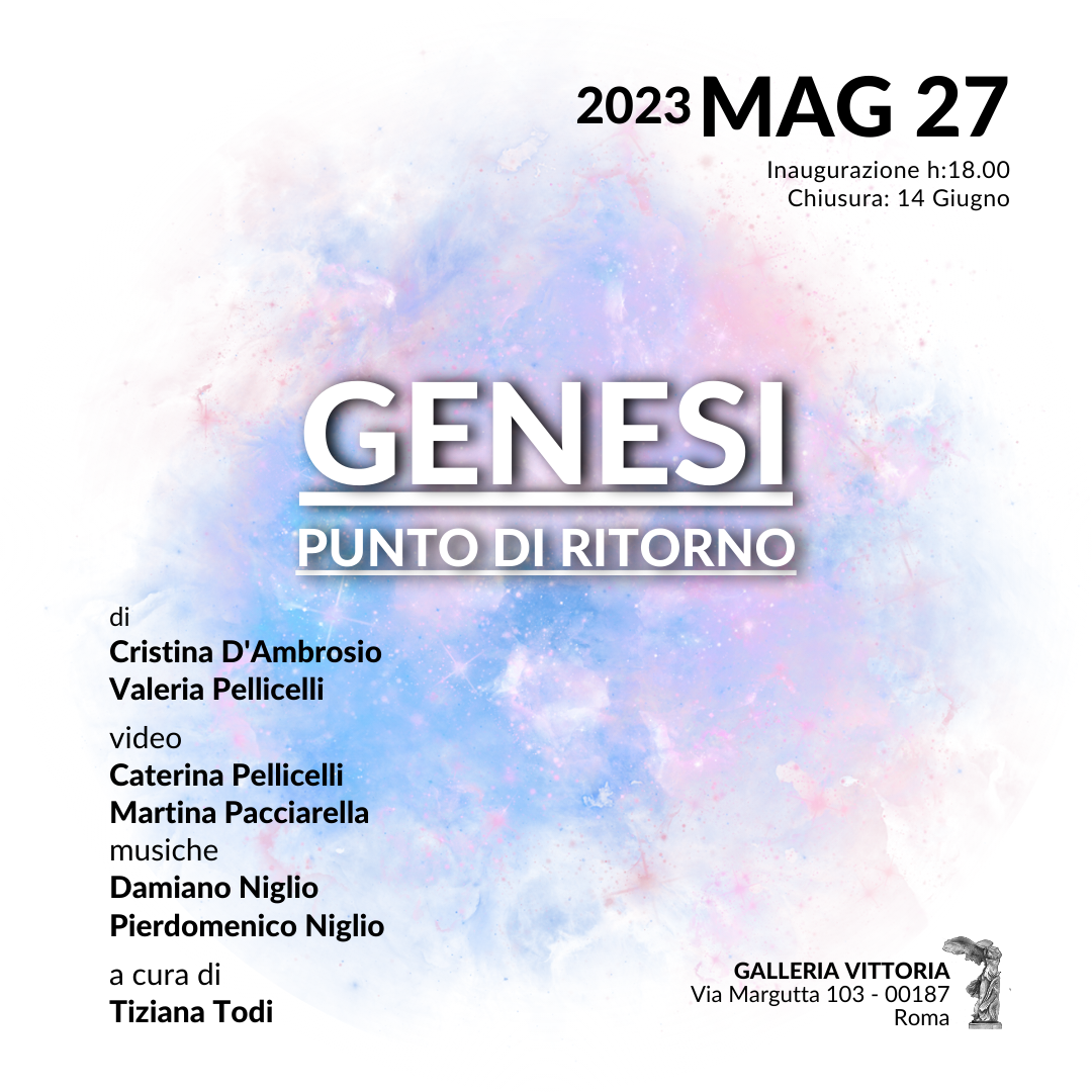 Sabato 27 Maggio alle ore 18, Galleria Vittoria presenta “Genesi, punto di ritorno” di Cristina D'Ambrosio e Valeria Pellicelli e a cura di Tiziana Todi e visitabile fino al 14 giugno.