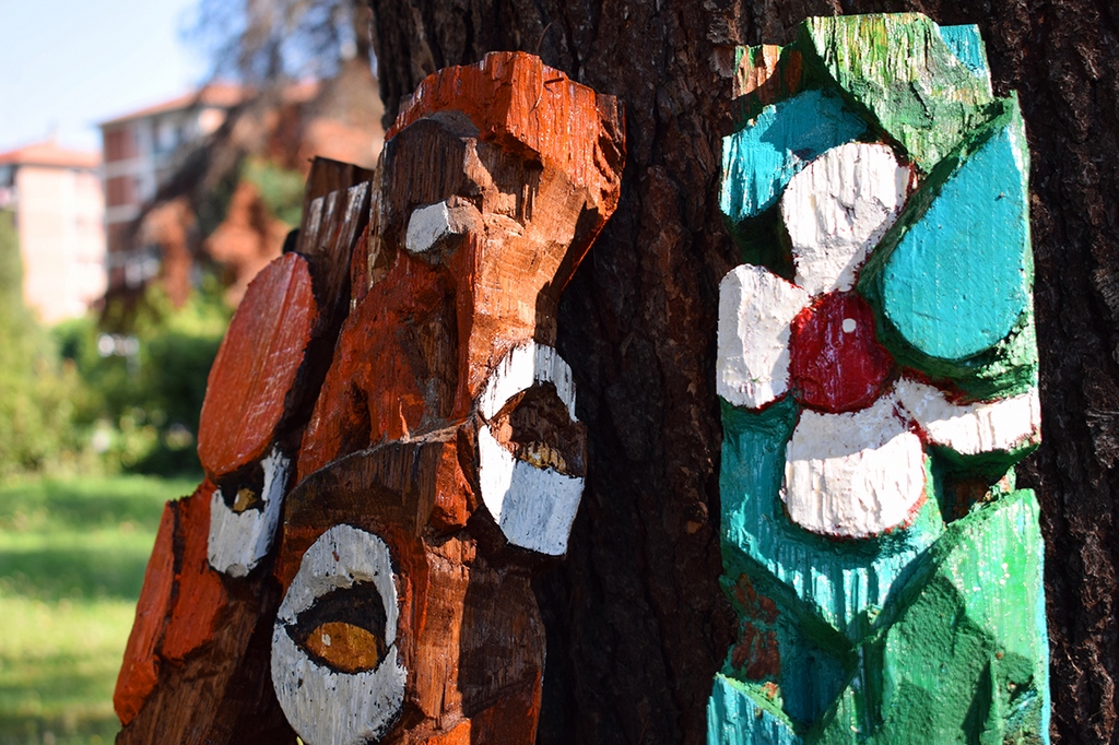 Per tutta l’estate, il parco di Villa Verde ospiterà “Nel sottobosco degli haiku” di Carlo Moretti, installazione composta da una serie di legni scolpiti e dipinti. «I legni che si ergono dal suolo come fioriture venute a compimento a nostra insaputa – spiegano le curatrici – mentre tutto era silente, sono un chiaro invito alla meditazione. L’autore, affascinato dai brevi componimenti poetici di origine giapponese, abbraccia e fa sua la filosofia Zen, che innalza il non finito, l’imperfetto, l’impermanente a regola estetica. Le sue opere, realizzate con legni di recupero, evocano sempre elementi della natura e raccontano un mondo in continua mutazione».