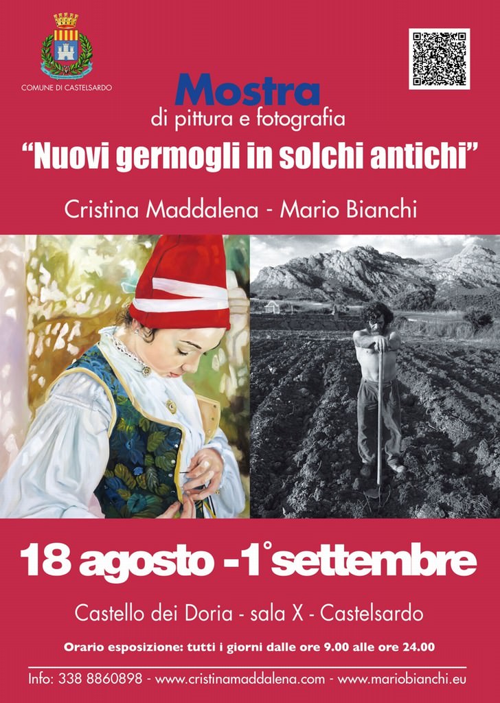 Cristina Maddalena e Mario bianchi, ospiti del Comune di Cstelsardo proporranno opere realizzate in Sardegna per celebrare il loro amore per la terra e la gente sarda che hanno imparato ad apprezzare attraverso i generosi ed ospitali abitanti del paese in cui sempre più a lungo vivono e lavorano.