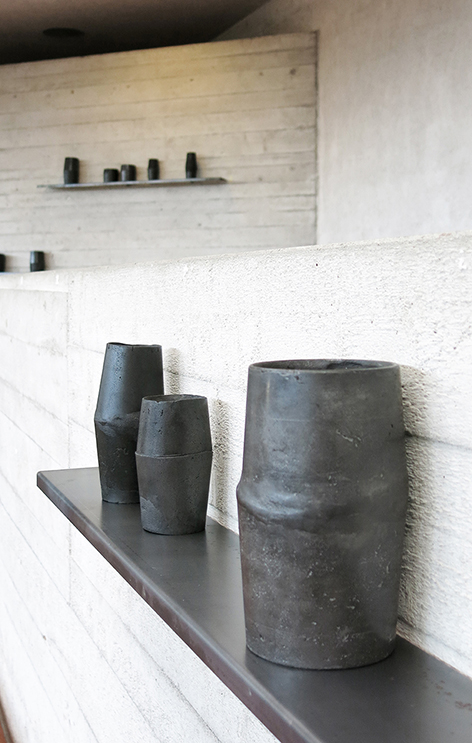 Il progetto di Cristina Treppo nasce dalla rilettura delle caratteristiche scabre, essenziali, e allo stesso tempo non prive di una loro tonalità emotiva, dello spazio architettonico veneziano, e si articola, anche dal punto di vista dell’allestimento, in diretto contatto con le pareti e le superfici di cemento grezzo. Le opere della Treppo sono forme che possono ricordare dei vasi, o comunque dei contenitori, dall’aspetto senza tempo, proprio grazie al particolare uso del materiale, quasi dei reperti, o dei ritrovamenti affiorati durante la fase di demolizione del sito antico per far posto alla nuova struttura e finora mai esposti. Suggestioni che collidono e collimano, grazie alla ruvidezza del materiale utilizzato architettonicamente e alla delicatezza con cui invece viene trattato dall’artista, generando un sottile dialogo fra struttura e forme, l’una funzionalmente estranea alle altre, ma la cui estraneità apre ad una complessiva rilettura, non solo funzionale, dell’edifico stesso.