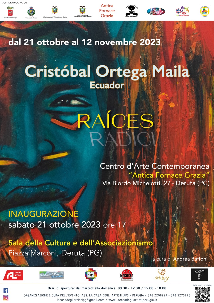 La mostra organizzata dall’Associazione “La Casa degli Artisti” APS e curata da Andrea Baffoni, è realizzata con il patrocinio di Provincia di Perugia, Comune di Perugia, Ambasciata dell’Ecuador in Italia, Consolato A.H. dell’Ecuador a Perugia.