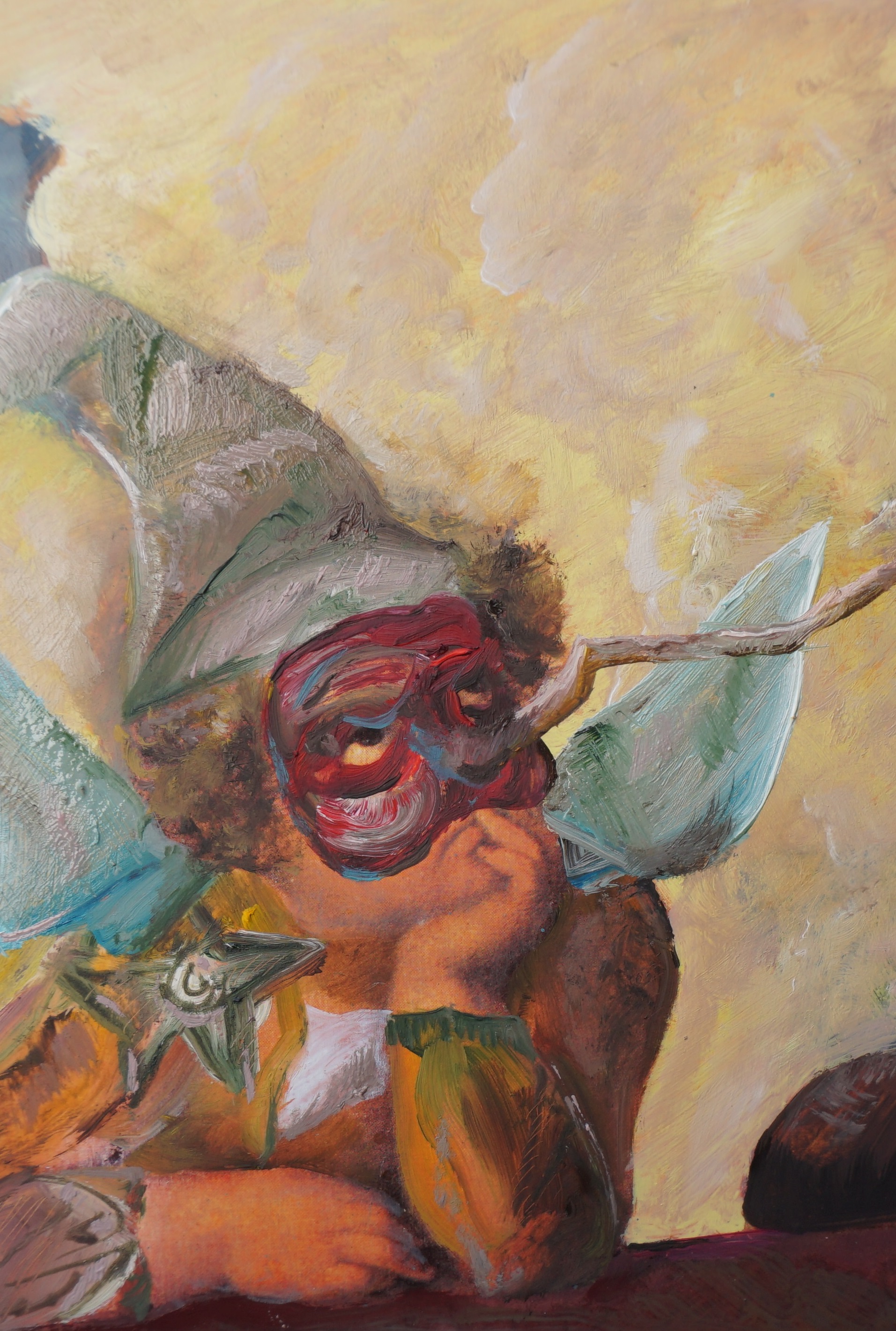 Il visitatore di ogni età potrà indagare la sfera delle proprie emozioni recondite che tutti noi proviamo fin da piccoli. Per l’occasione nei dipinti esposti l’autore analizza le opere dei grandi Maestri, attraverso il caleidoscopio della commedia dell’arte (Rugantino, Meo Patacca, Pulcinella, Arlecchino, Pantalone) e delle maschere da tutto il mondo (i Supereroi, le maschere asiatiche, africane).