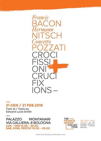 Tre maestri ai piedi della croce: il 78enne viennese Hermann Nitsch, Concetto Pozzati (80 anni compiuti a dicembre), e uno dei grandi “maledetti” del secolo scorso, il dublinese Francis Bacon, scomparso nel 1992, visionario, scandaloso, genio provocatorio senza limiti