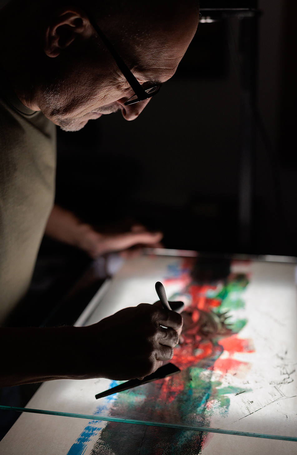 Con il progetto “Cromosuoni” esegue performance di live painting insieme a musicisti improvvisatori come avverrà al Centro Mavarta in occasione dell’inaugurazione di sabato 16 marzo (ore 16.30) insieme il contrabbassista Gregorio Ferrarese. Quello di Ferri è un approccio generativo che si realizza pienamente nella dimensione dal vivo, nel “rapporto temporale” con l’esecuzione della musica. Come si può intuire, il titolo della mostra gioca per assonanza con la parola “cromosomi” (le molecole base del DNA) ponendo l’accento, attraverso forma e colore, sull’elemento minimo e fondamentale della musica, il suono. Una direzione di ricerca che, nel corso del Novecento, ha conosciuto esperienze fondamentali come quelle di Klee e Kandinsky.