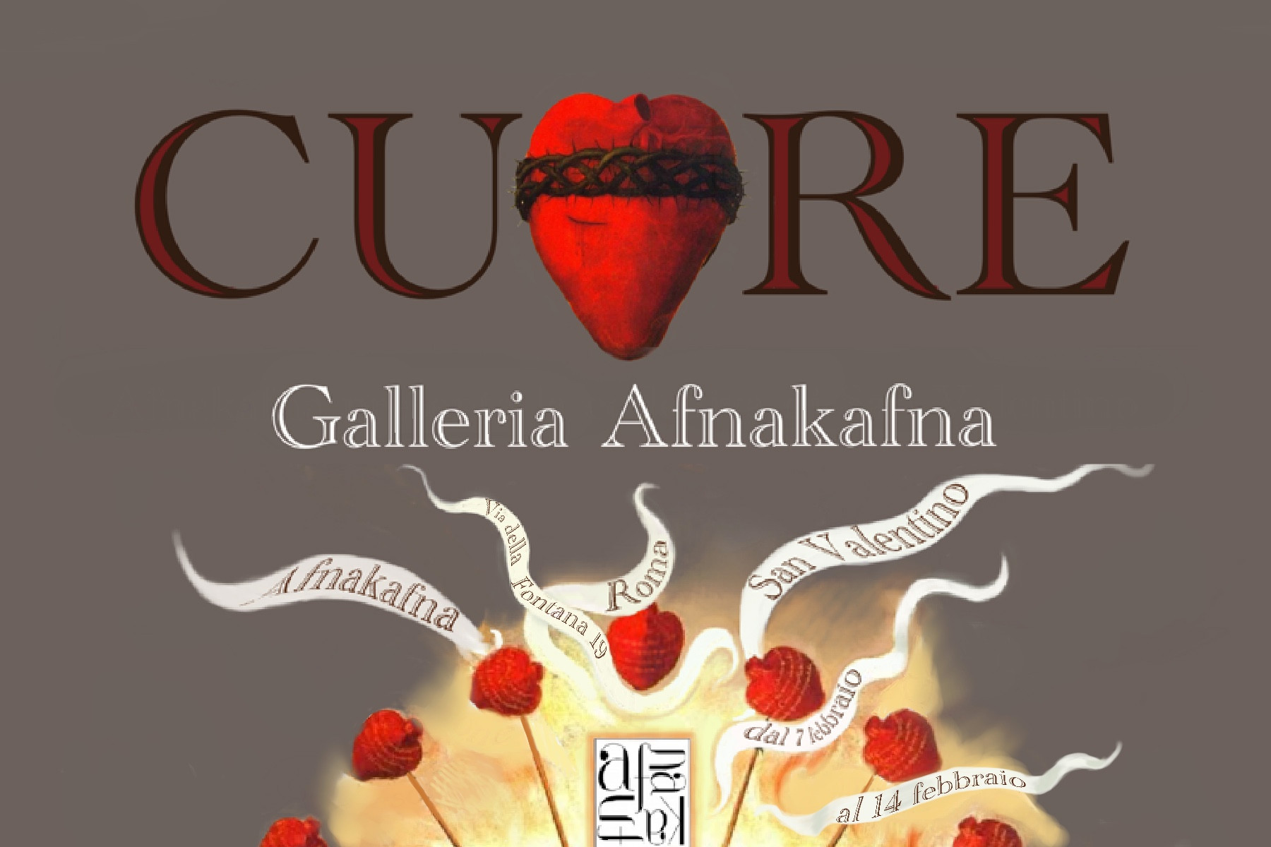 Il Cuore, metafora dell’amore, è stato interpretato dagli artisti nei modi più diversi e contrastanti, dando vita a definizioni, immagini e racconti fantastici: dipinti e collage che rappresentano cuori feriti e cupi sospesi tra teschi e tinte surreali, iperrealisti e pop, accompagnati da cuori immaginari che si rintracciano nei casuali mutamenti di forma del mondo intorno a noi.