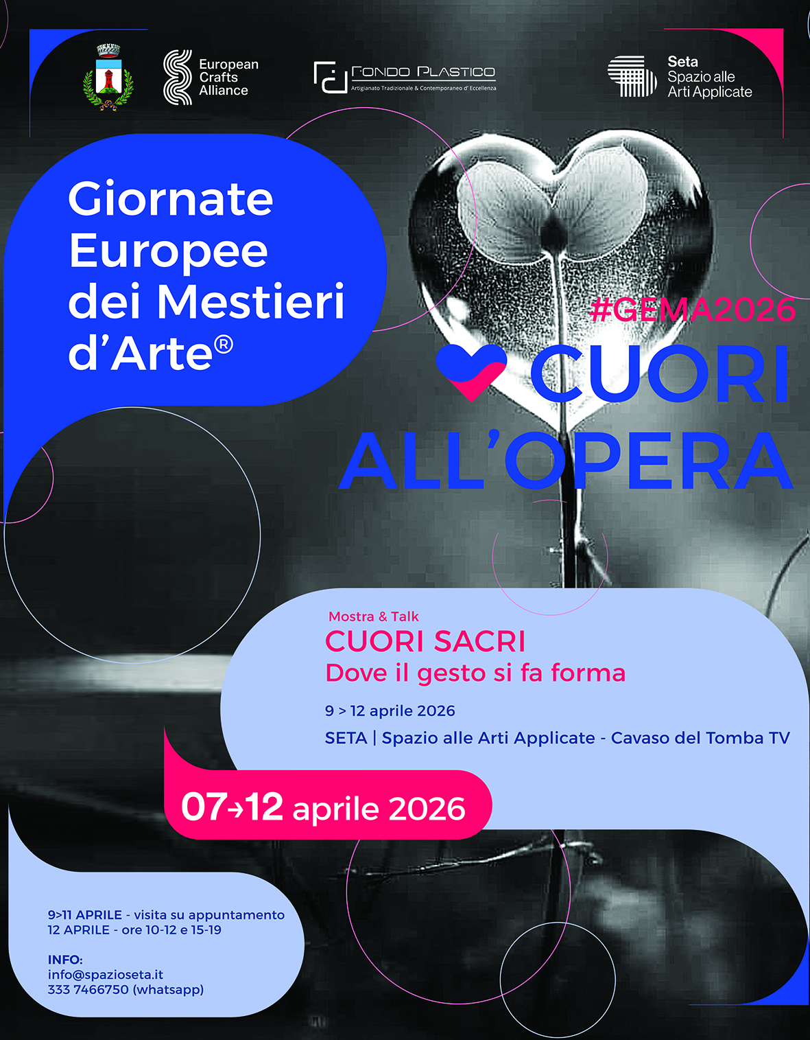 CUORI SACRI è una mostra ideata da Fondo Plastico per le Giornate Europee dei Mestieri d’Arte 2026, ospitata negli spazi di SETA | Spazio alle Arti Applicate.