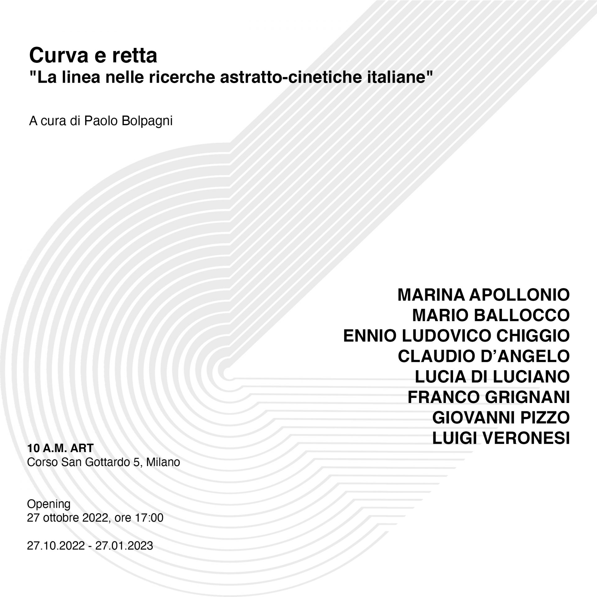 Dal 27 ottobre 2022 al 27 gennaio 2023 la Galleria 10 A.M. ART di Milano, nella sua sede di corso San Gottardo 5, organizza la mostra "Curva e retta. La linea nelle ricerche astratto-cinetiche italiane".