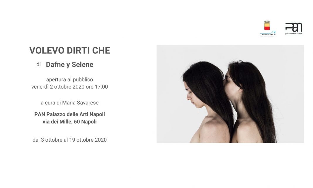 “Volevo dirti che” è la prima personale delle artiste Dafne y Selene al PAN Palazzo delle arti di Napoli. Si tratta di un lavoro decisamente intimo, carico di metafore visive, raccontato attraverso la fotografia.