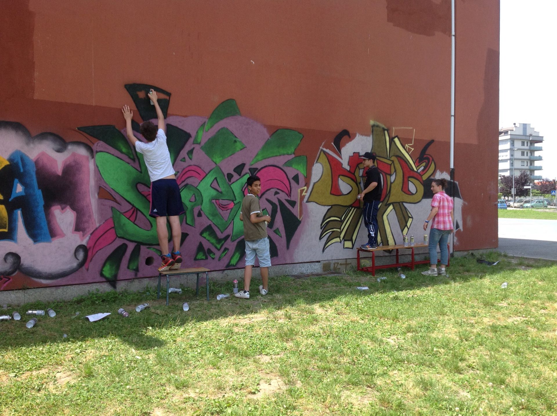 Il laboratorio ha un obiettivo educativo dalla doppia valenza: da un lato aiuta a sensibilizzare maggiormente i ragazzi nei confronti dell’ambiente in cui vivono, dall’altro li tiene distanti dal mondo virtuale e li porta a misurarsi con i problemi reali che qualsiasi lavoro manuale comporta. Dal punto di vista didattico, fornendo le basi sia teoriche e sia pratiche della tecnica artistica di pittura con le bombolette spray, ha educato all’uso corretto e controllato delle stesse, segnando una netta differenza con il vandalismo. Per quanto riguarda, infine, l’aspetto estetico/ambientale, l’immagine dell’edificio scolastico è cambiata grazie a una serie di murales realizzati dai ragazzi nei due anni di laboratorio su alcuni prospetti esterni della scuola, nella convinzione che se l’ambiente è piacevole e soprattutto curato dai ragazzi stessi, è più accattivante andare a scuola e considerarla propria.