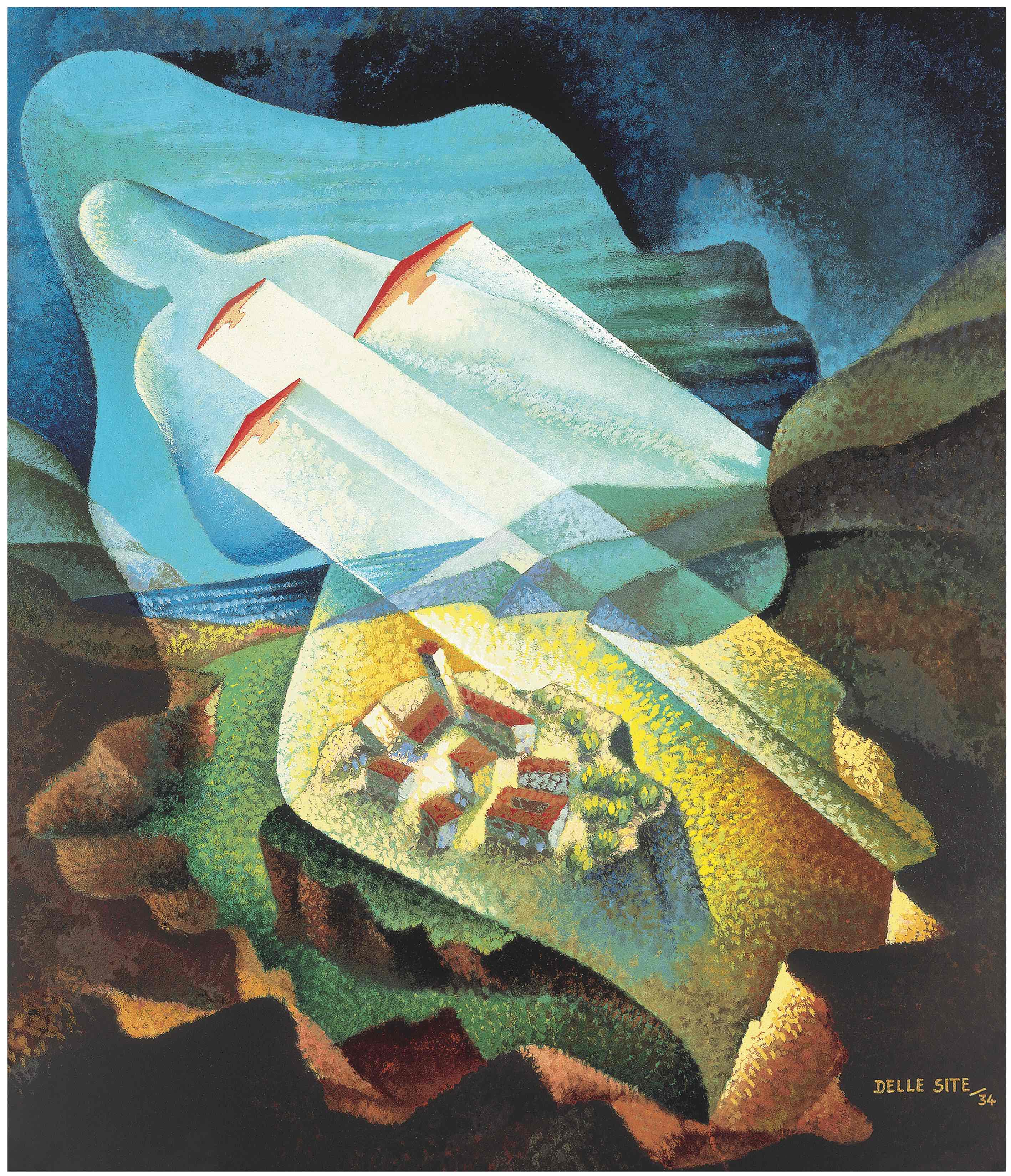 L’Aeropittura è una forma moderna e intrigante di paesaggismo, tutta italiana. Nasce come sviluppo del Futurismo, senza dubbio la più importante avanguardia artistica italiana del Novecento, che dal 1909 in poi coinvolgerà tutti i principali artisti italiani in molteplici declinazioni fino alla fine della Seconda guerra