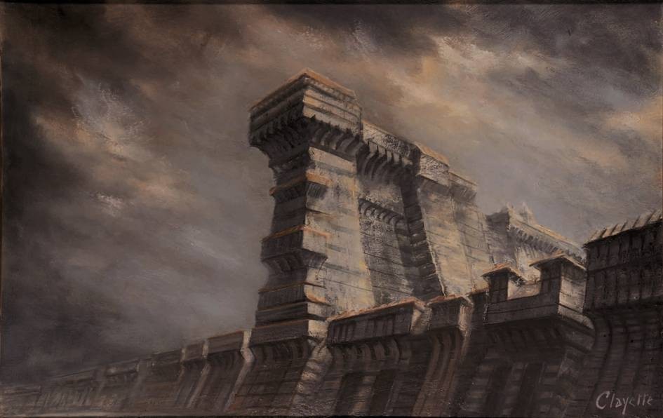 Pierre Clayette è un “fantastico” pittore, misconosciuto, anche in patria. L’omaggio tributatogli dal MIAAO nell’ambito della mostra Dalle città dell’ Aldilà, con l’esposizione di ventiquattro suoi importanti quadri che documentano un trentennio di attività, dall’inizio degli anni ’60 alla fine degli anni ’80, è la prima personale, e antologica, che gli viene dedicata dopo decenni di silenzio espositivo e critico a livello internazionale. Eppure Clayette gode come pittore del patronnage di due gran maestri come Roger Caillois, che lo ammira, e Louis Pauwels, che lo chiama a collaborare alla rivista “Planète” sin dai primi numeri. Dopo di che tiene, soprattutto a Parigi, diverse mostre personali, ma poi verso l’inizio degli anni ’80 dirada, sino a interromperla, l’attività espositiva. Ma prosegue in quella di illustratore : a esempio emblematico, nel 1984 adorna una preziosa edizione dei Songes de pierres di Caillois. E proprio con parole di Caillois sugli ammoniti fossili, tratte dai Cases d’ un échiquier e tradotte da Agnese Silvestri, si può descrivere un suo capolavoro esposto al MIAAO, intitolato Pour le spectacle du monde, che rappresenta una conchiglia Nautilus “pietrificata”, e comprendere una delle cifre del suo immaginario: “Un’ assonometria d’argento brilla ormai nell’arenaria o nella silice. Essa vi iscrive in un’estensione minuscola il presagio della turbina e allo stesso tempo l’espansione delle nebulose (…) Illustra nello stesso tempo la genesi dei mondi e i macchinari dell’industria…Frammenti vaganti….hanno compiuto la loro opera, permettendo alla cifra di sorgere”. Nel 1986 Clayette illustra l’edizione dell’ Imprimerie Nationale de France delle opere di Arthur Rimbaud, a cura di Cecil Arthur Hackett. E la citazione di un brano di questo illustre specialista, dedicato da alle visioni urbanistiche del sommo poeta francese contenute nelle Illuminations, diviene adesso per noi la migliore interpretazione di tutta la pittura d’architettura di Clayette, le cui città immaginarie, proprio come quelle di Rimbaud “sono una stupefacente sintesi di leggende e di miti, di elementi concreti e astratti, di cose normalmente incompatibili, di oggetti estratti da diversi paesi e da diverse epoche, di rumori e movimenti inattesi. Sono città dove, attraverso un’arte sapiente, tutte le nostre prospettive e categorie sono ribaltate, in opposizione alla moderna barbarie delle nostre città”.