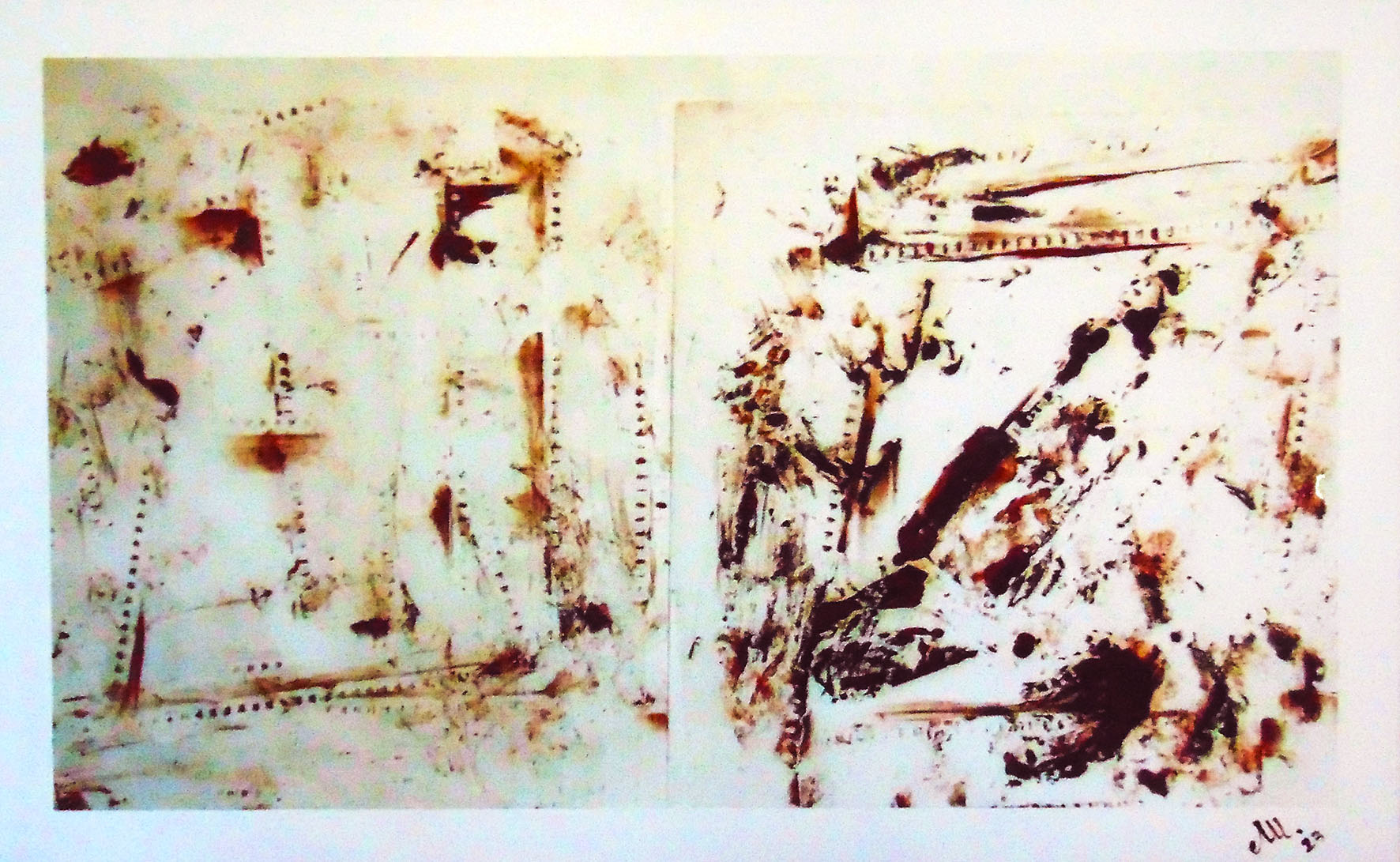 L’artista trasforma sulla tela i suoi bozzetti (realizzati spesso su carta riciclata), mediante un metodo innovativo che oltre al colore include l'uso dei negativi di vecchie pellicole fotografiche .