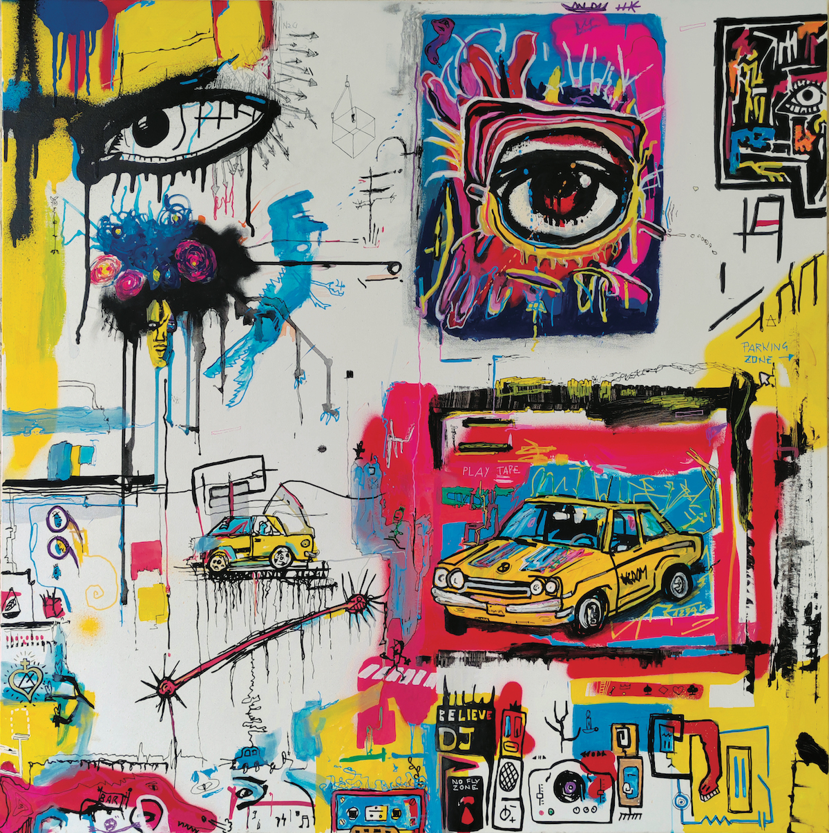 «Il ricorrente turbinio di immagini coltivate nel tempo ha trovato via libera e Mauro Di Berardino, che non poteva non trovare che in Basquiat il suo mentore, ha proiettato sulle superfici usate una sequenza caleidoscopica di immagini, pittogrammi, assunti linguistici, riferimenti letterari, sociali, storici, mitologici, che potrebbe essere infinita se non fosse costretta dal limite spaziale del supporto utilizzato. Detto che il colore, acceso, squillante, sparso nelle più varie gamme tonali e negli accostamenti più arditi, la fa da padrone in tutte le composizioni, una riflessione meditata meritano le frasi, le iscrizioni, le parole, riversate a piene mani nelle opere. [...] Siamo al ritorno della simbologia comunicativa dei graffiti rupestri preistorici, che Mauro Di Berardino, arricchendo di un codice linguistico la forza espressionistica delle immagini, fa propria come esigenza primaria e irrinunciabile e riporta inevitabilmente al contemporaneo.»