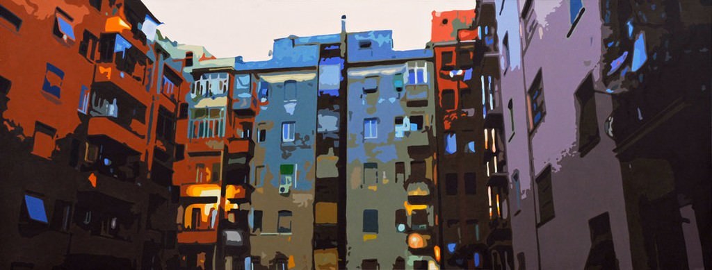 In occasione di questa mostra personale dan.rec presenta opere pittoriche inedite, tele di grande e piccolo formato che fissano dettagli di realtà metropolitana: qualità peculiare, la straordinaria potenzialità narrativa nel descrivere scenari e personaggi di un’epopea urbana. La dimensione convenzionale della quotidianità, con i suoi codici e i suoi prototipi, è dall’autore trasposta in coloratissimi grovigli di sagome, cieli, palazzi abitati che s’ispirano all’energia vibrante della grande città.