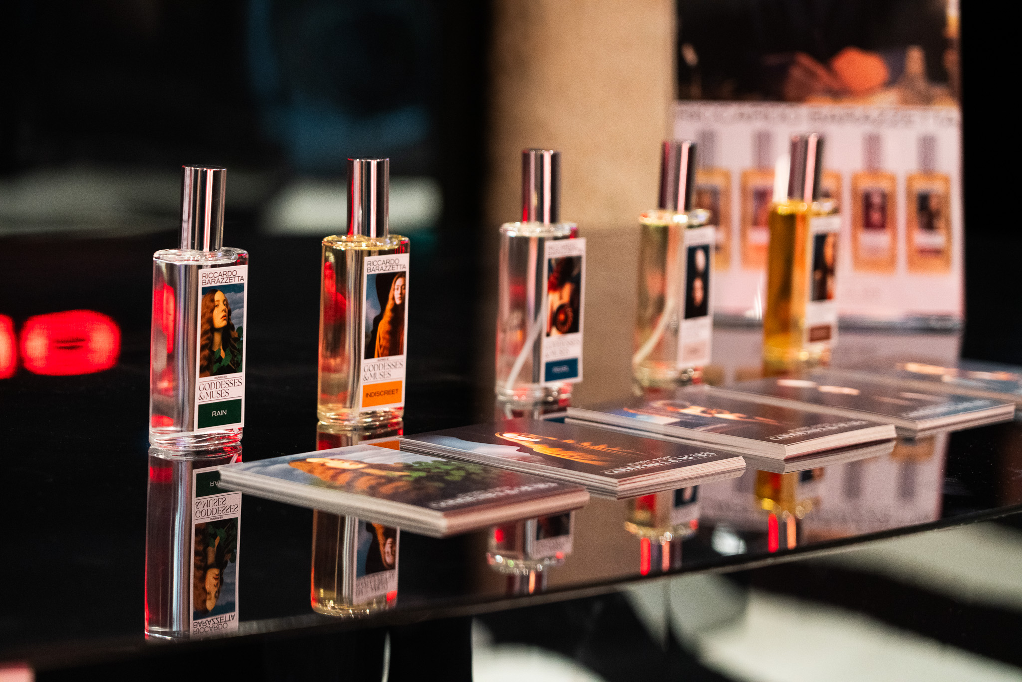 “Goddesses & Muses” di Daniel Salvi fonde femminilità, profonde emozioni umane, e inconscio in opere digitali create dall’elaborazioni di immagini AI e Fotografiche. La mostra include anche un’esclusiva esperienza olfattiva con profumi originali d’autore per un approccio alle opere multisensoriale.