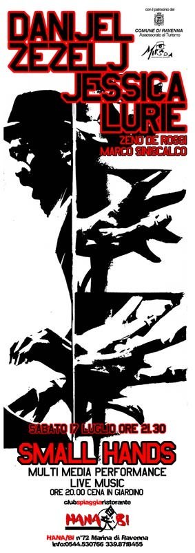 La performance Small Hands è di fatto una breve storia dedicata al pianista Thelonious Monk. La realizzazione dal vivo di strisce di fumetto giganti è ritmata e accompagnata dalla musica composta ad hoc. La musica è una combinazione di pezzi scritti e improvvisazione. Partecipano anche i musicisti Zeno De Rossi e Marco Siniscalco. La struttura della performance è ovviamente preparata, ma ci sono spazi aperti di improvvisazione, sperimentazione, cambiamenti ed errori, di cui un elemento fondamentale è l’imprevedibile influenza del pubblico. Come dichiarò Fellini in una sua vecchia intervista, la suggestione segreta del fumetto è quella dell'immobilità delle farfalle trafitte dallo spillone: questa immagine evocativa può fare da didascalia a quello che avverrà la sera del 17 luglio sulla spiaggia dell’HANA-BI.