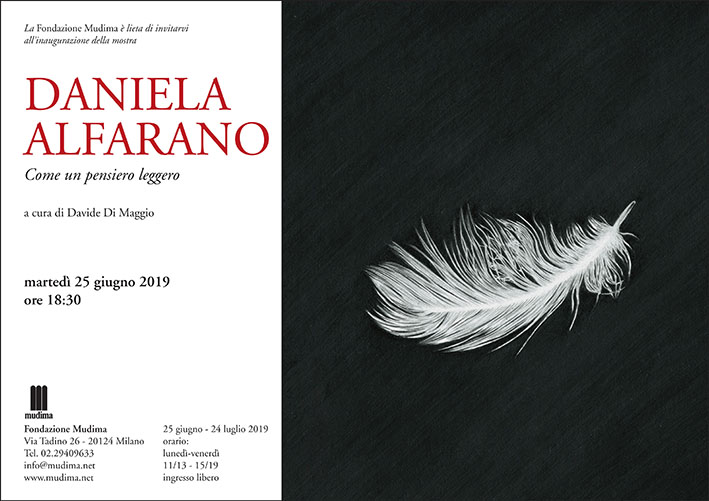 Ma in nessuno di questi autori la piuma è oggetto unico e ripetuto e vissuto con ossessività come invece è il caso dell'opera di Daniela Alfarano che sarà presentata qui alla Fondazione Mudima.