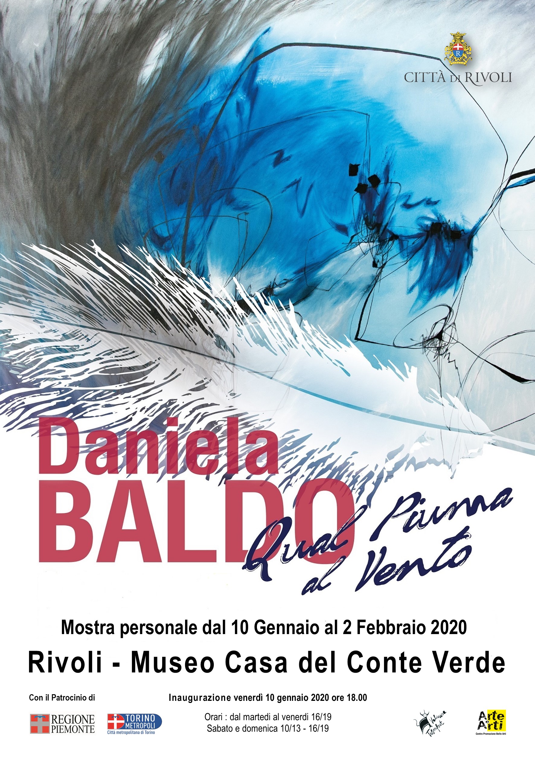 L'Assessorato alla Cultura del Comune di Rivoli propone, nell'ambito dell'attività espositiva della Casa del Conte Verde, la mostra di pittura “Qual piuma al vento”, dell'artista Daniela Baldo.