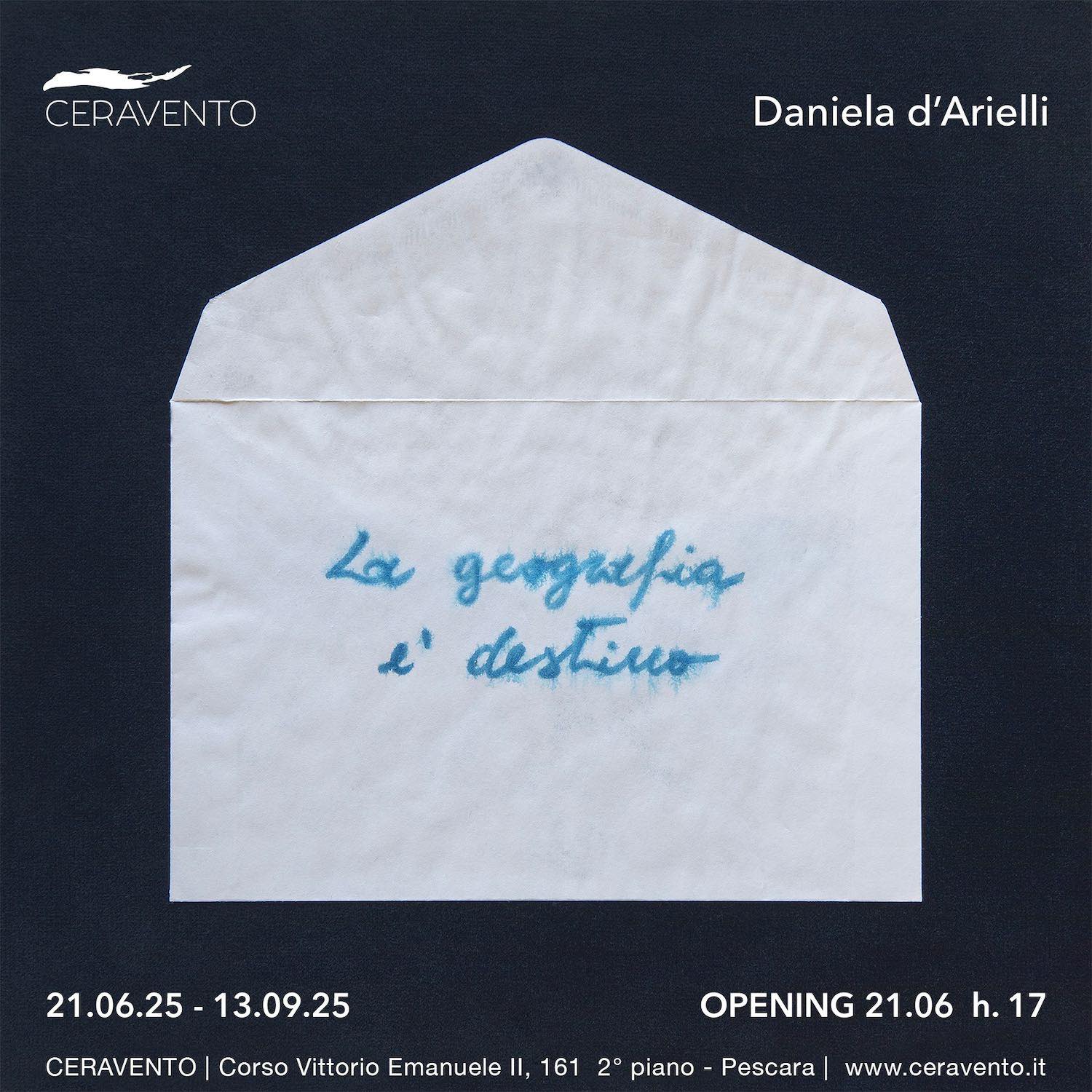 Un doppio binario: quello della geografia e quello del destino. Al centro il tema del viaggio, sia fisico che interiore. È questo il cuore di “La geografia è destino”, mostra personale di Daniela d’Arielli. Ad ospitarla, dal 21 giugno al 13 settembre, è la galleria Ceravento di Pescara.