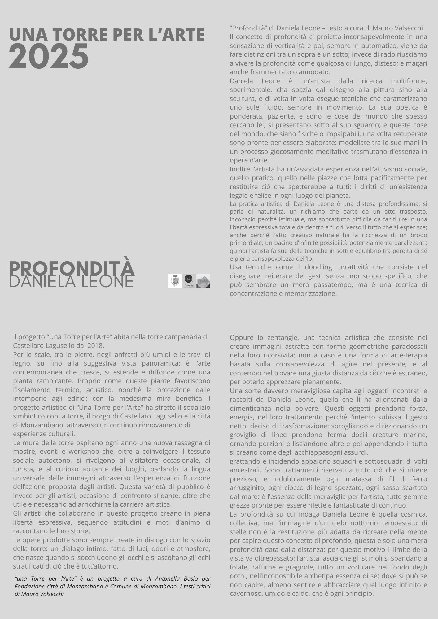 “Profondità” è un progetto di Daniela Leone per “una Torre per l’Arte” – Attraverso installazioni scultoree e pittoriche l’artista mette in mostra un percorso