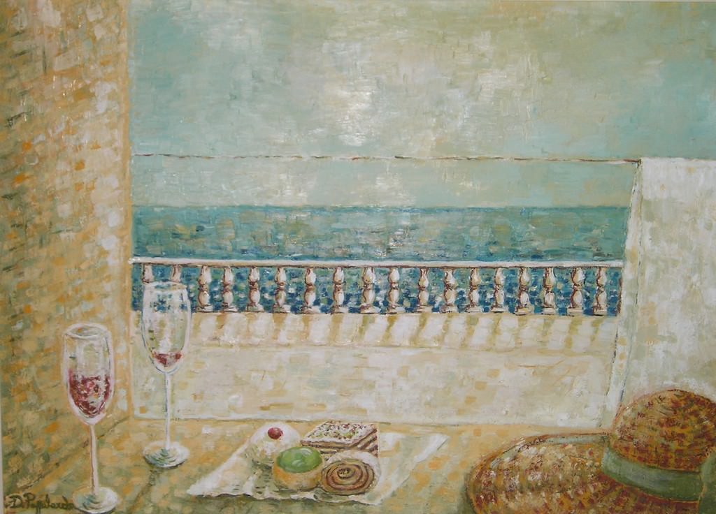 I soggetti ricorrenti della mia pittura sono oggetti che nel quotidiano vengono molto vissuti: bottiglie, bicchieri, cappelli, sedie, finestre, tasti di un pianoforte, oggetti insomma che trasudano vita passata. Questi vengono inseriti all’interno di scorci di ambienti chiusi, di stanze. Tutto accade all’interno delle mura domestiche, il paesaggio tuttalpiù può essere colto attraverso una finestra, che ci offre sì uno sguardo verso l’esterno, ma che ci lascia ancorati agli affetti e alla sicurezza della propria casa.