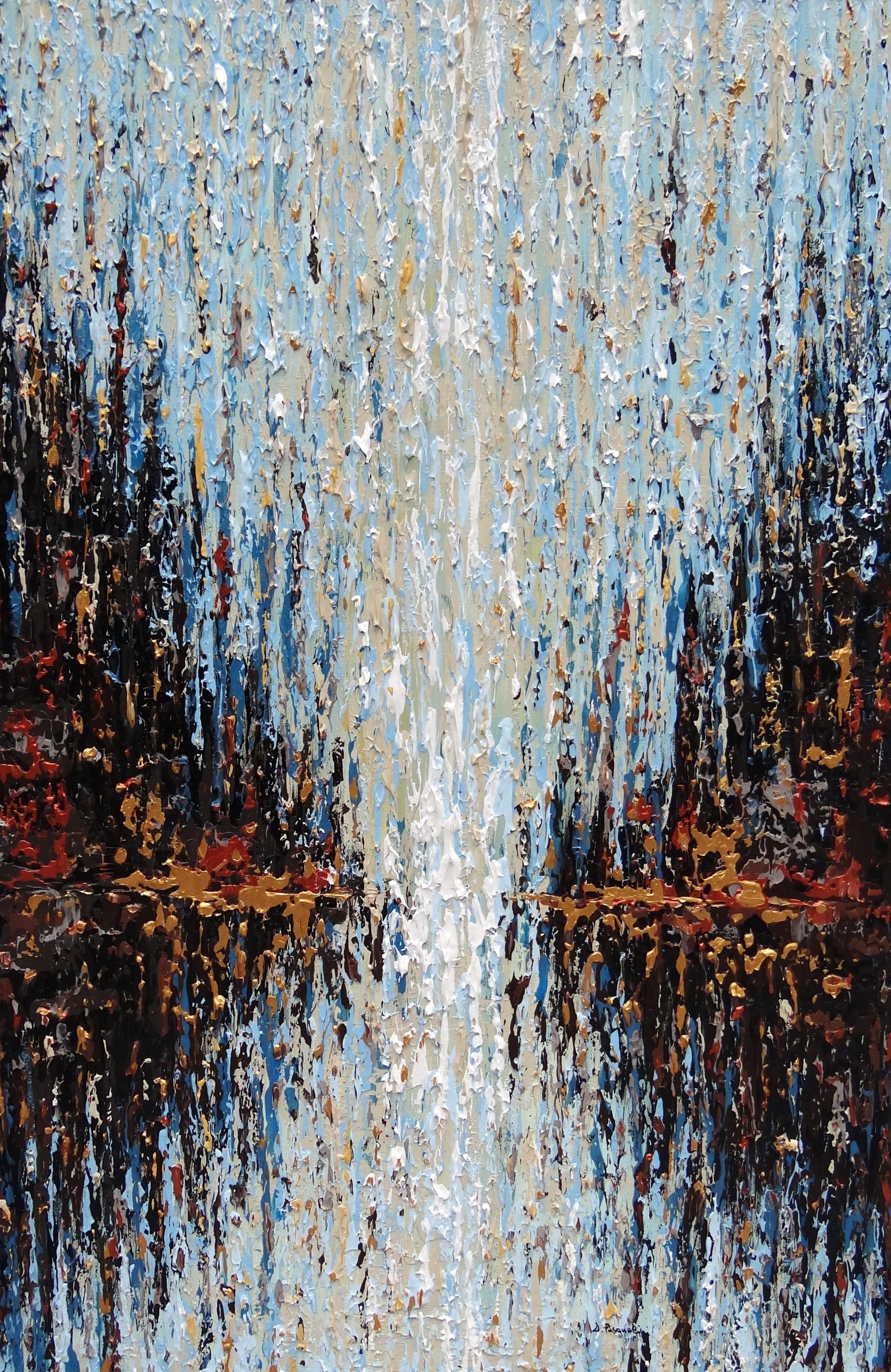 Le opere che Daniela Pasqualini presenta in questa mostra personale alla Galleria “Il Collezionista” sono composizioni aperte, dalle intense tonalità materiche, brunite, piene di fascino, frutto di un coerente, appassionato e costante lavoro di ricerca che è poi la sostanza della sua arte .