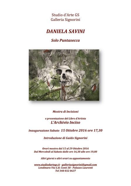 In mostra verranno esposte circa venti incisioni realizzate da Savini negli ultimi tre anni con alcune più recenti inedite. Il percorso espositivo vuole essere un resoconto della sua evoluzione e crescita da incisore