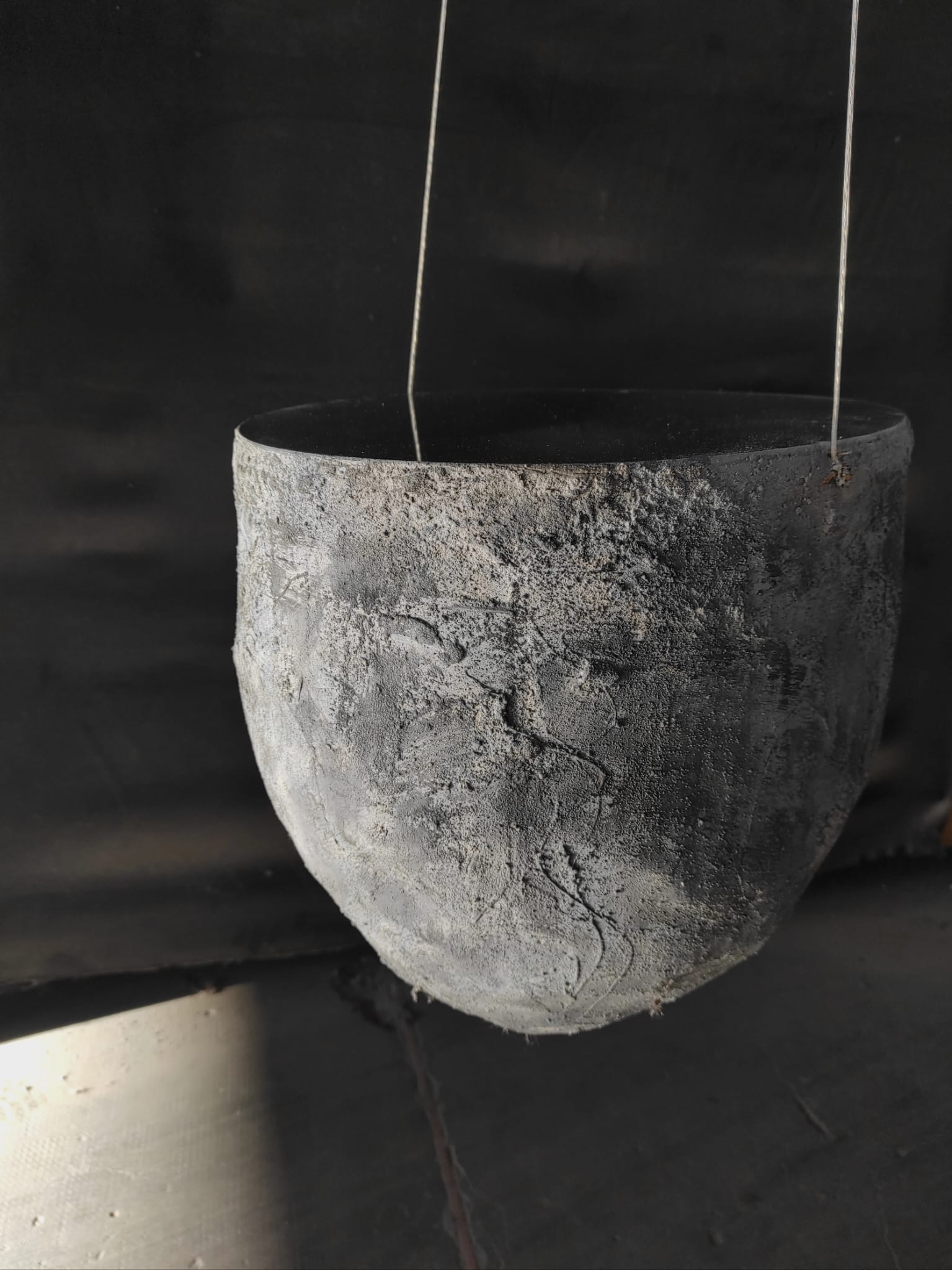 In questa nuova installazione dal titolo Acqualuce, Arosio presenta undici vasi sospesi che si palesano come forme arcaiche, contenitori simbolici di acqua ma anche di luce, elementi primordiali che evocano le forze naturali.