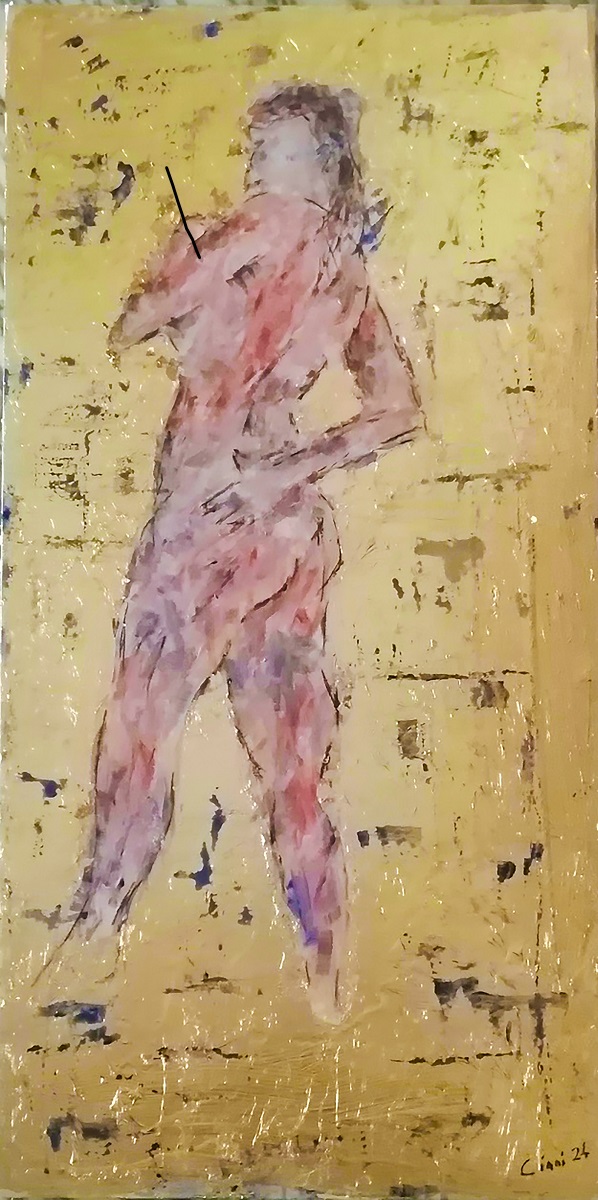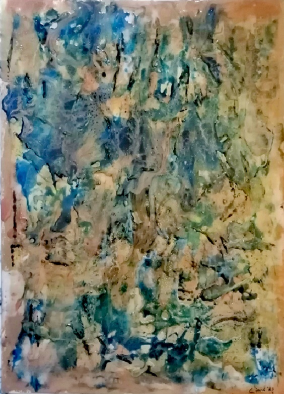 Daniele Ciani usa prevalentemente colori acrilici su tela ma nelle composizioni dell’ultimo triennio ha incrementato la sua tecnica compositiva con l’uso della resina. Aggiunge poi complementi a foglia d’oro che rendono unica e preziosa l’opera finale.