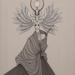 In particolare, Davitti si appropria del costume e della cultura dell’Inghilterra vittoriana a cavallo tra i due secoli, così estetizzante e cupa a un tempo, animata da un marcato eclettismo che egli ripropone ed espande, includendo ornamenti e attributi simbolici di derivazione asiatica e oceaniana e adottando la tecnica calligrafica tipica del Sol Levante, dalla cui tradizione culturale Davitti desume, inoltre, la visione wabi sabi dell’esistenza, basata sull’accettazione della transitorietà.