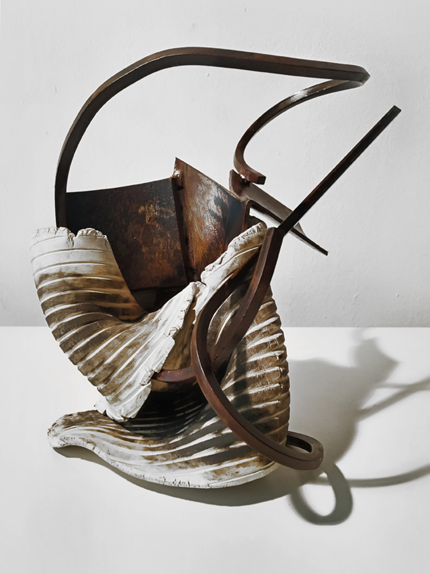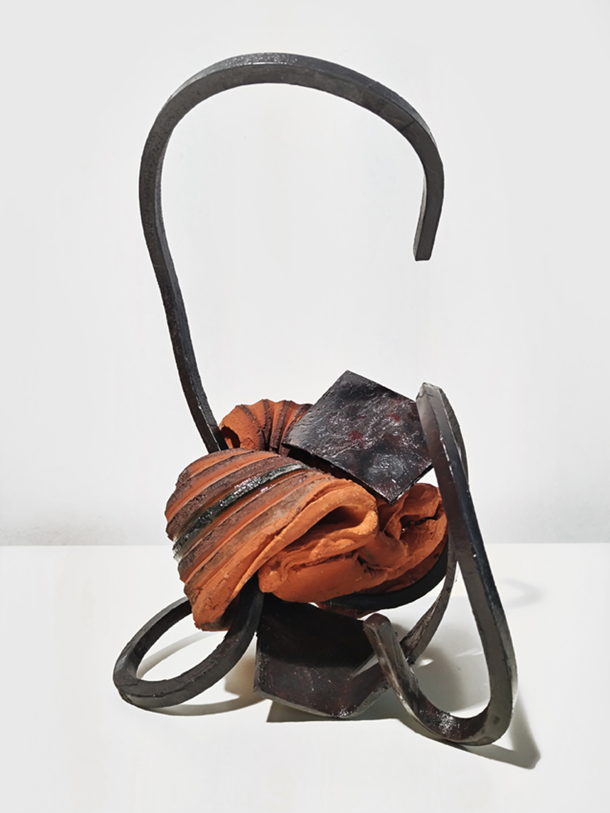 Lo scultore milanese presenta, nello spazio de ‘Il Triangolo Nero’, una accurata e meditata scelta di opere eseguite prevalentemente nel biennio 2024/25. Un’articolata disseminazione di sculture, dove gli elementi che concorrono alla realizzazione di questi lavori sono il ferro e la terracotta.