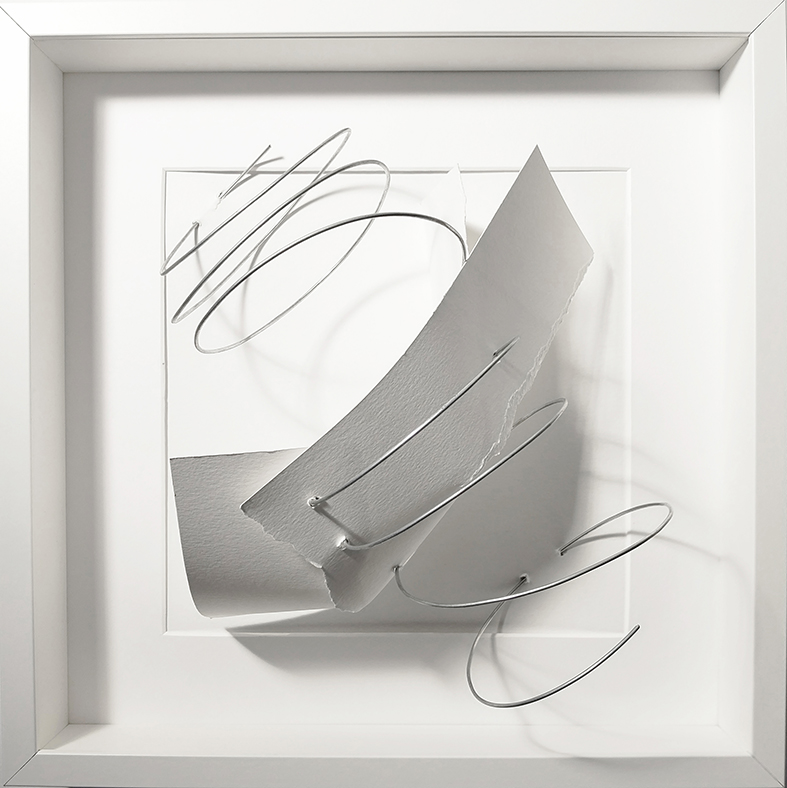 La carta, anzi le carte, diverse per consistenza, colori, resistenza alla piegatura e ai pigmenti, gli permettono di agire su più livelli. Come scrive Luca Pietro Nicoletti nel testo alla mostra non sono disegni preparatori, bensì queste opere su carta “nella loro oscillazione fra intervento pittorico e manipolazione del supporto, infatti, non si ritrovano analogie esplicite con la scultura, ma un comune principio estetico: uno slancio spontaneo verso la materia naturale, con le sue increspature impreviste, e l’elemento razionale che la contiene, o ne delimita i confini.”
