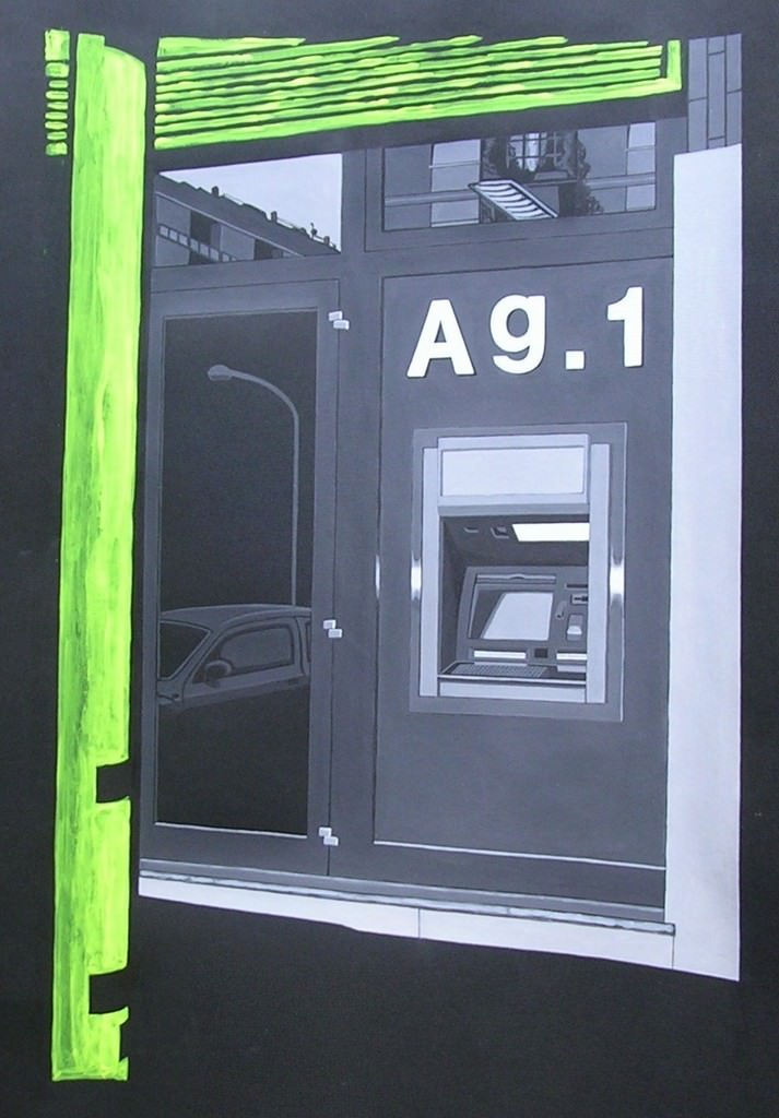 L’iperrealismo del Novelli (che per altro l’artista ha abbandonato, come ricerca, già dal 2008), è certamente una delle risposte che stavamo cercando; l’estetica del simbolo e la sua trasfigurazione nel reale ci consente di rivalutare, restituire dignità di paesaggio a cose, oggetti e spazi o non-luoghi, pure consueti, eppure accettati con distacco e talvolta con disagio: paesaggi e realtà urbane dalle quali fuggiremmo volentieri, sentendocene succubi, ma nelle quali siamo immersi, pur senza volerne prendere coscienza, con disappunto e disagio. I vani delle scale, le cabine telefoniche, i divisori spartitraffico, le cabine del bancomat divengono, nelle opere del Novelli, paesaggi contenitori di un disagio dello spirito che il colore, saggiamente dosato e basato su mezze tinte di grigi con lievissime sfumature di pochi colori diversi, appena accennati, propongono all’occhio che nella vita reale le guarda senza vedere: intanto, mentre il colore rappresenta il grigio della vita urbana, le geometrie e le masse uniformi e semplici delle cose si rivolgono all’anima ricordandoci che quei simboli antichi hanno perduto in quelle raffigurazioni del reale la potenza del mito.