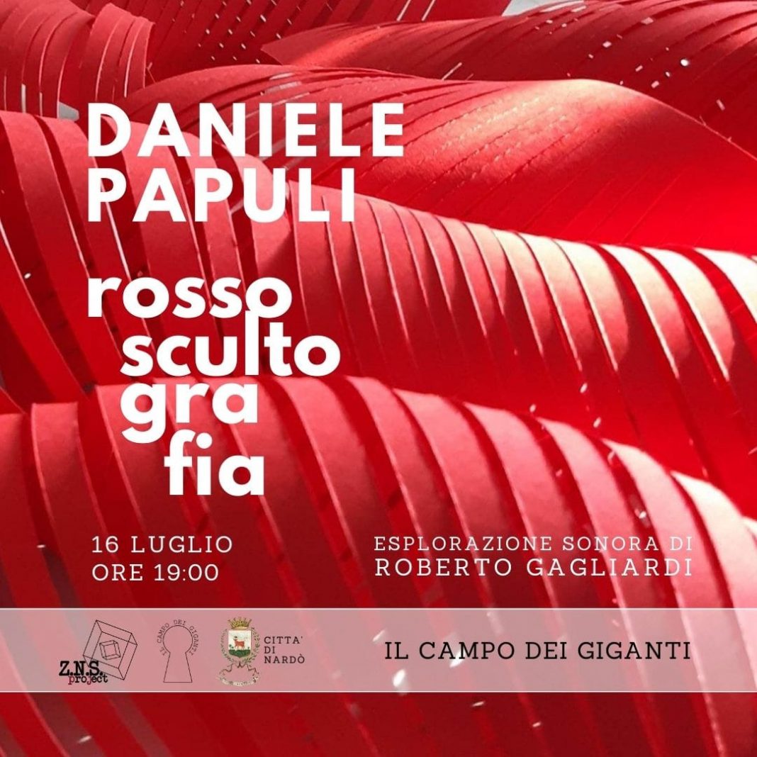 IlCampodeiGiganti ospita la Restituzione della Residenza Artistica “RossoScultografia” di Daniele Papuli. In Residenza, Papuli ha progettato una scultografia e una performance che unisce visione e sonorità, gesto e cura, che ridisegna il paesaggio manifestando la linfa vitale del Campo.
