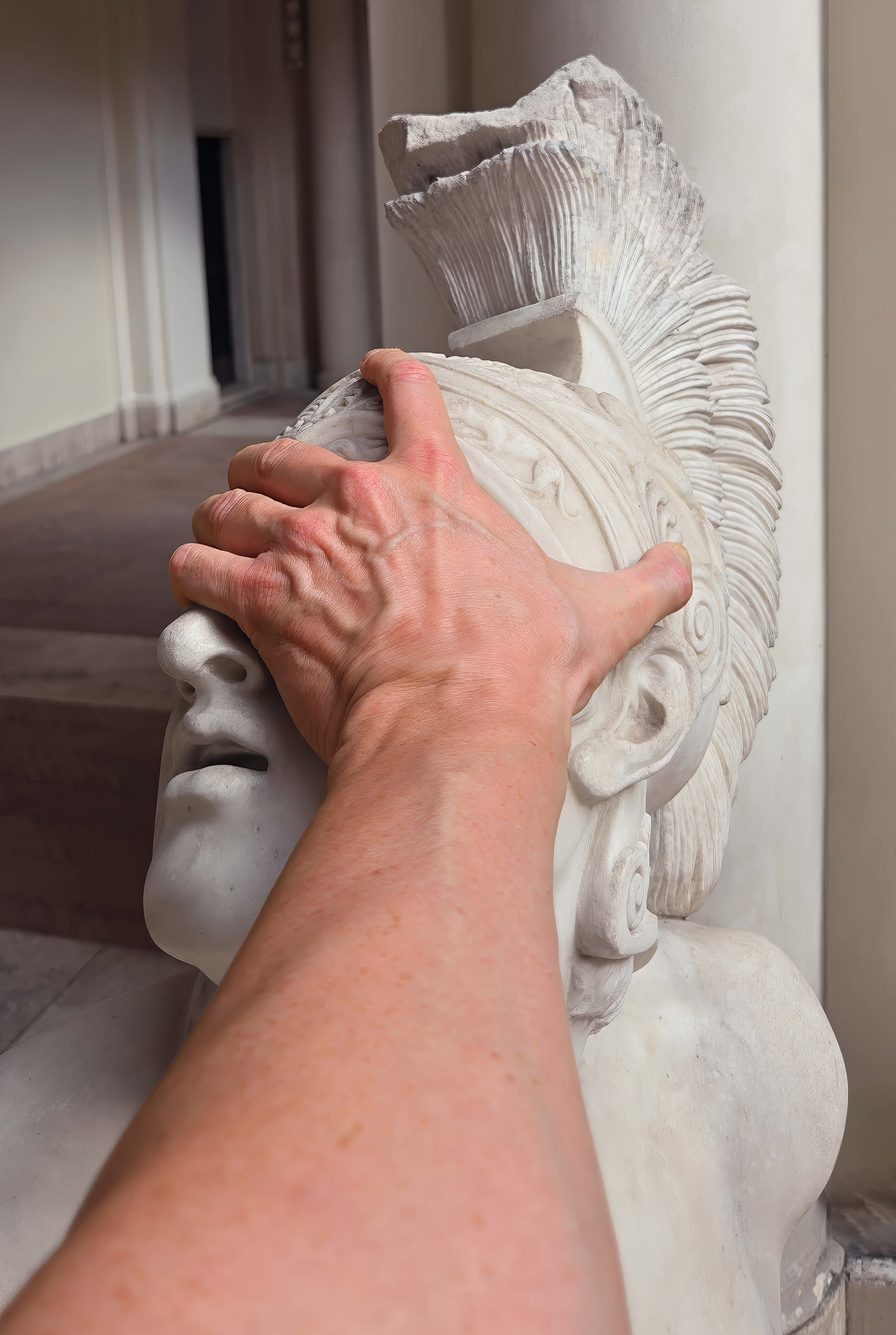 Nel porticato, tra le colonne del Borromini e visibile anche dall’esterno: The Chain, un lavoro della serie Cinema Rianimato già esposta nel 2021. In quest’opera l’artista rielabora un cartoon di Tom & Jerry per evocare angoscia, ossessione e il dolore legato al superamento dei limiti. Attraverso il montaggio ripetitivo, il gesto aggressivo diventa simbolo di una violenza inevitabile e ciclica, espressione di una natura umana condannata alla sopraffazione, al di là di ogni contesto culturale o sociale.