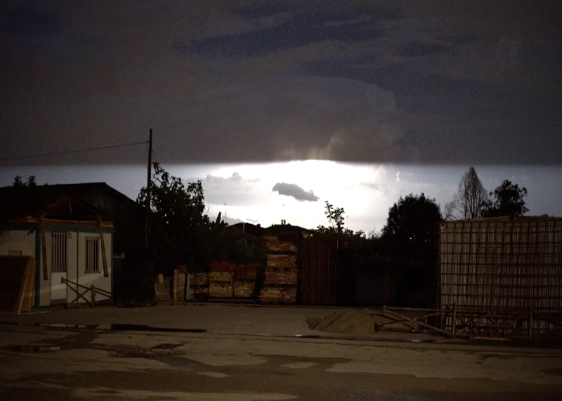 NOTTURNO (2020), L’opera cattura ciò che si vede fuori dallo studio dell’artista: una tempesta elettromagnetica di fine estate. Per un lasso di tempo prolungato si susseguono nel cielo una serie di scariche elettriche, la cui percezione è amplificata dal lavoro in post-produzione; questo paesaggio, falsamente immobile, emana forze ambigue e non precisamente definibili.