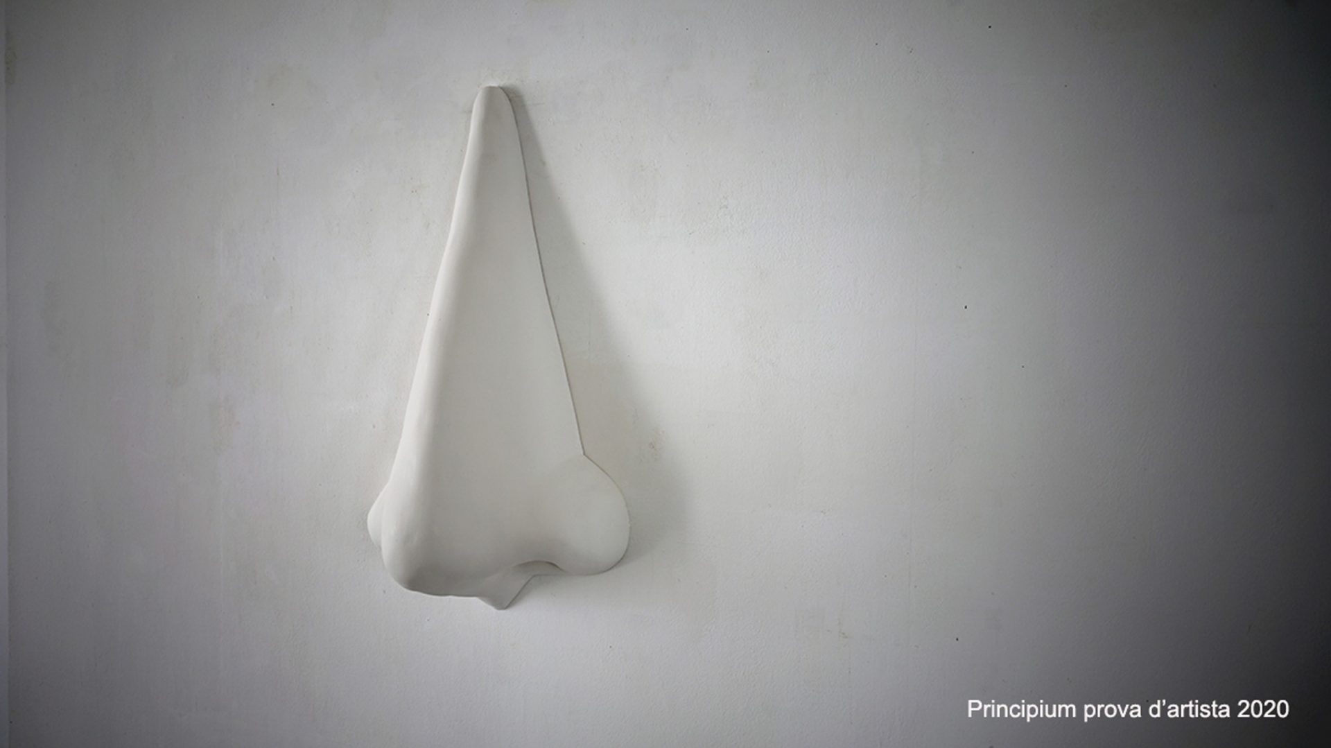 Il lavoro prende in esame un elemento fortemente caratterizzante della fisionomia, il naso, portatore di “carattere”, carico di capacità di imporsi nello spazio come presenza.
