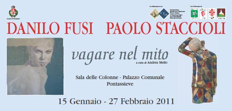 Sabato 15 gennaio alle ore 16,30 si inaugura nella Sala delle Colonne del Comune di Pontassieve la mostra “Vagare nel mito” degli artisti Danilo Fusi e Paolo Staccioli, curata da Andrea Mello. La mostra ospita personaggi di grande spessore artistico, ritenuti due artisti di fama uno nel campo della pittura, l’altro affermato ceramista. Danilo Fusi, presenta un biglietto da visita e un curriculum con oltre 50 mostre personali in Italia e all’estero. Pittore e intellettuale, unisce nelle sue opere una grande conoscenza e un originale tratto pittorico che richiama a molte correnti dell’arte contemporanea. Opere di grande professionalità realizzate da un artista a tutto tondo dal grande spessore culturale ed è forse proprio nella sua grande conoscenza dell’universo dell’arte che si trova la sua grandezza. L’opera di questo pittore è molto complessa, ricca di citazioni e continui rimandi a artisti del passato, che con grande ironia vengono ricollegati al mondo contemporaneo. In questa mostra presenta in particolare alcuni ritratti del quotidiano e del mito “come il volto della Marilyn”. Paolo Staccioli, invece racconta con le sue creazioni un appassionante mondo dove la ceramica prende forma, con colori e figure che uniscono classicità, disegno onirico e architettura unite da una sapiente ricerca artistica che fa emergere grande talento e una tecnica in continuo rinnovamento. Una scultura artistica sorretta da una grande tecnica che rende Staccioli uno dei massimi artefici di questa disciplina artistica. Arte a passione si sposano alla perfezione facendo nascere un mix di grazia e leggerezza e un’innata capacità di rendere queste ceramiche originali, riconoscibili e inconfondibili, in una parola: uniche. Tutto questo si potrà apprezzare nelle sue figure di guerrieri e grandi personaggi in ceramica e bronzo; dipinti e sculture in un'unica realtà.